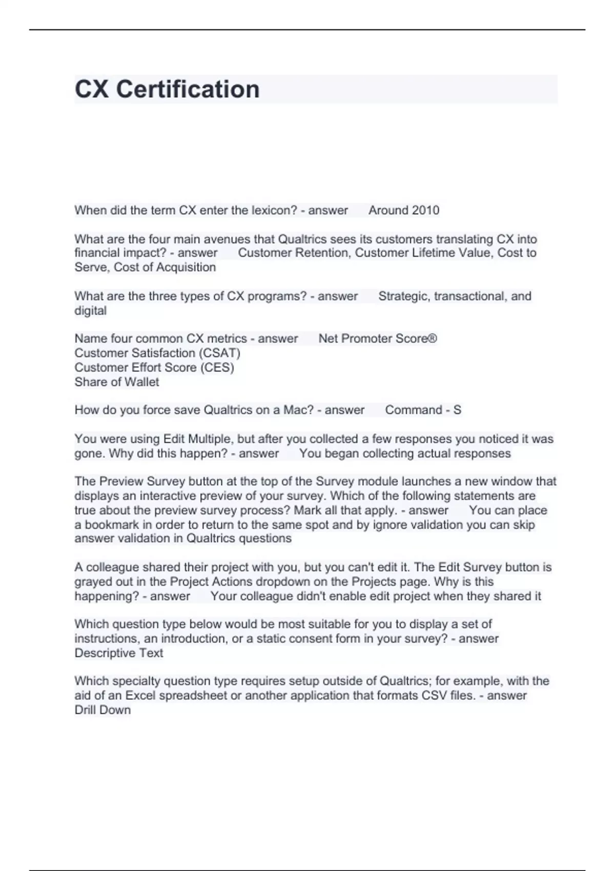 CX Certification Questions and Answers Latest Updated