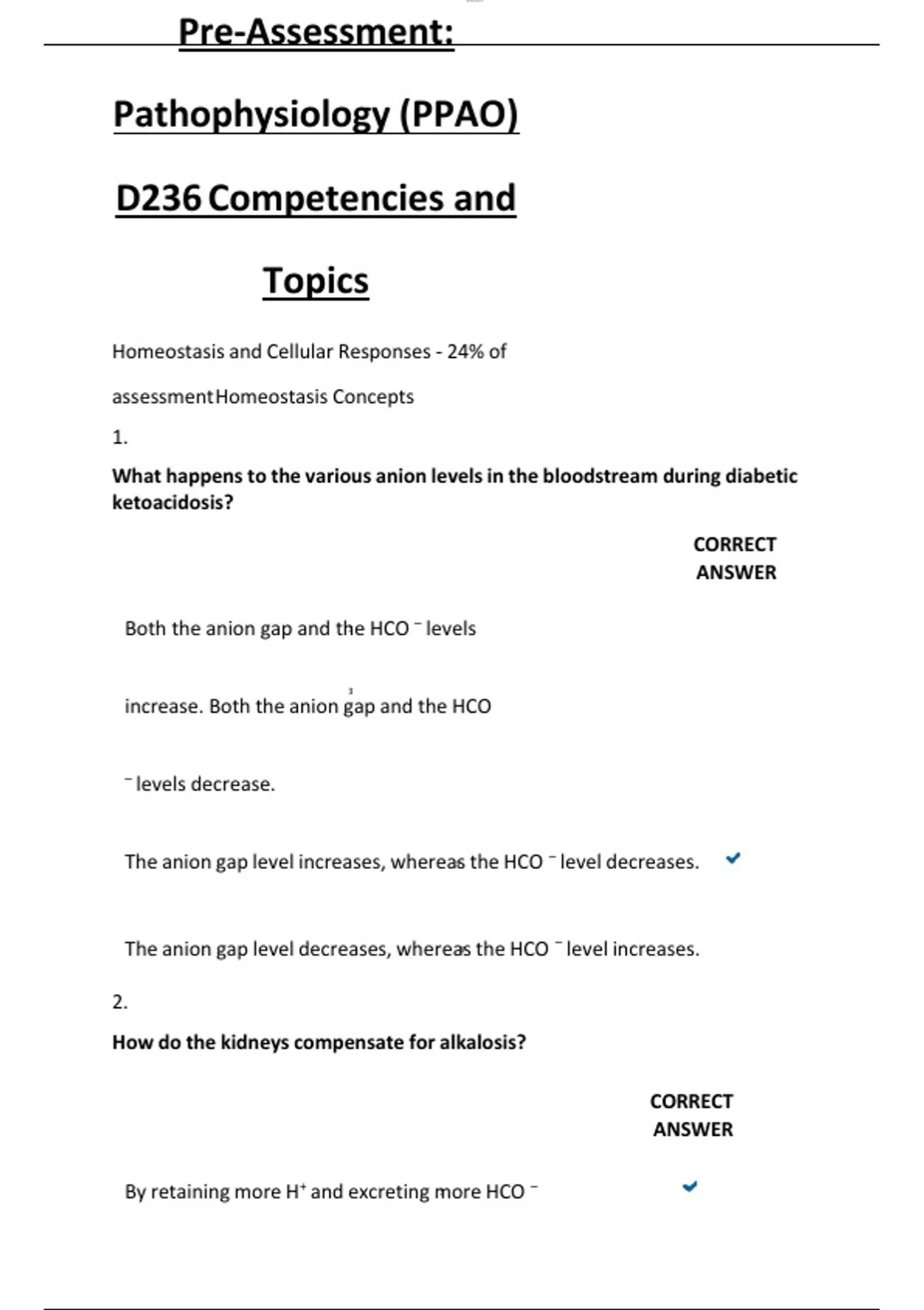 Pre-Assessment: Pathophysiology (PPAO) D236 Competencies and Topic