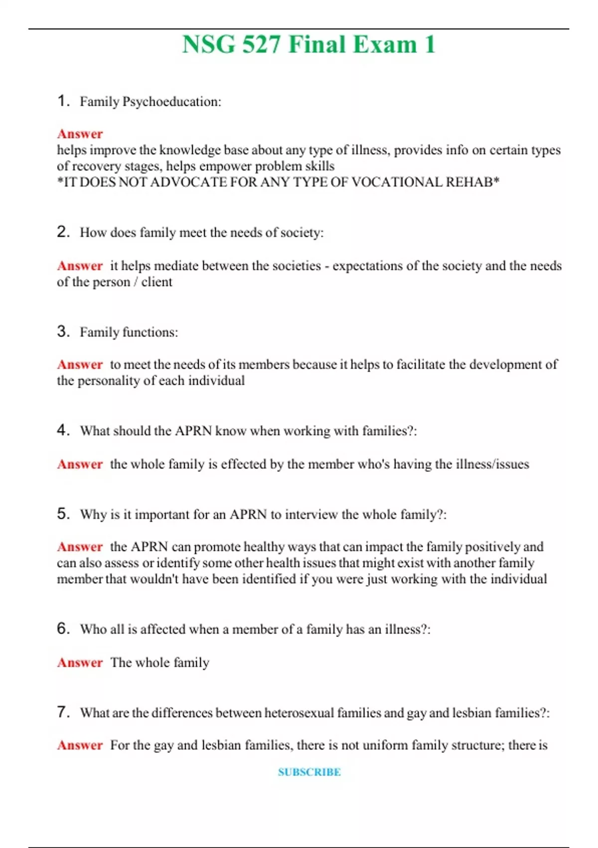 NSG 527 Final Exam 1 (Latest 2024 / 2025) Questions & Answers with rationales