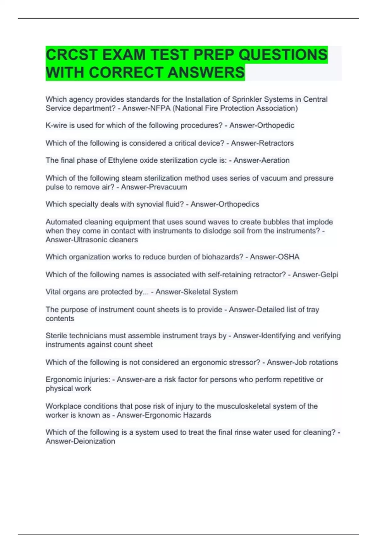 crcst exam test prep questions with correct answer