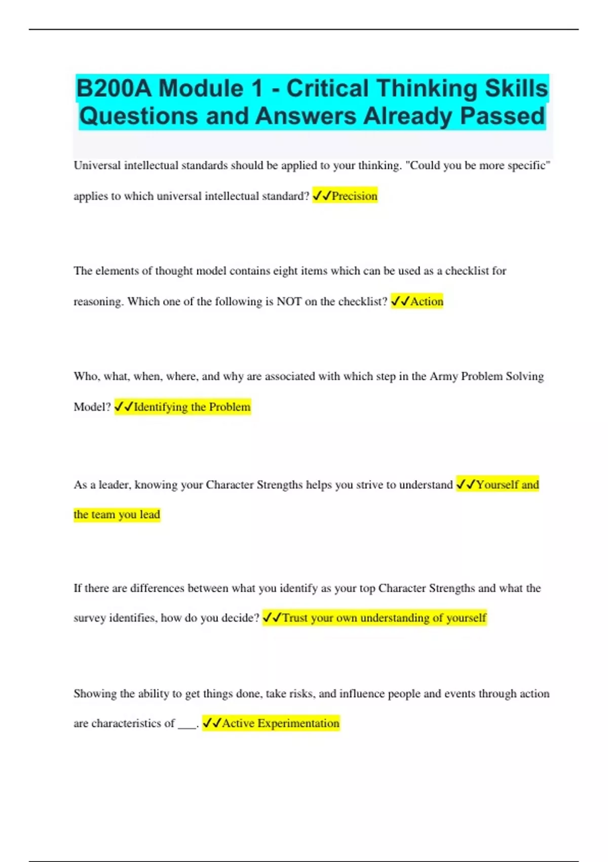 B200A Module 1 - Critical Thinking Skills Questions and Answers Already Passed