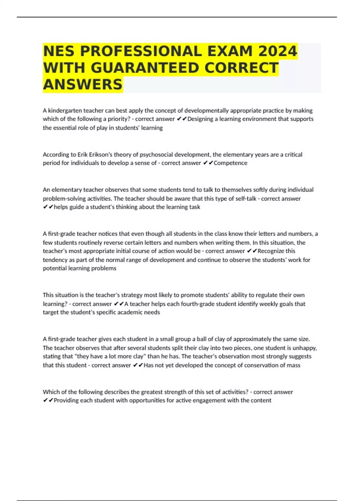 NES PROFESSIONAL EXAM 2024 WITH GUARANTEED CORRECT ANSWERS
