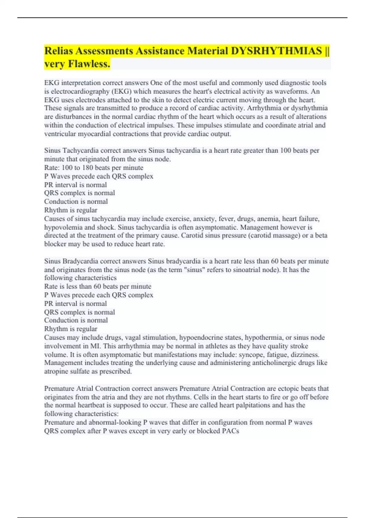 Relias Assessments Assistance Material DYSRHYTHMIAS || very Flawless.