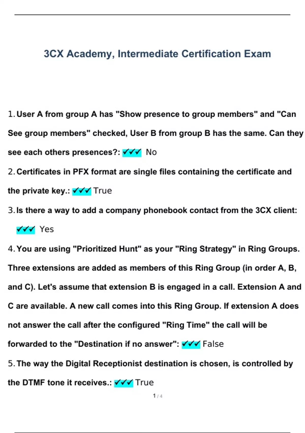 User A from group A has "Show presence to group members" and "Can See group members" checked, User B from group B has the same. Can they see each others presences? - No Certificates in PFX format are single files containing the certificate and the private key. - True Is there a way to add a comp... [Show more]