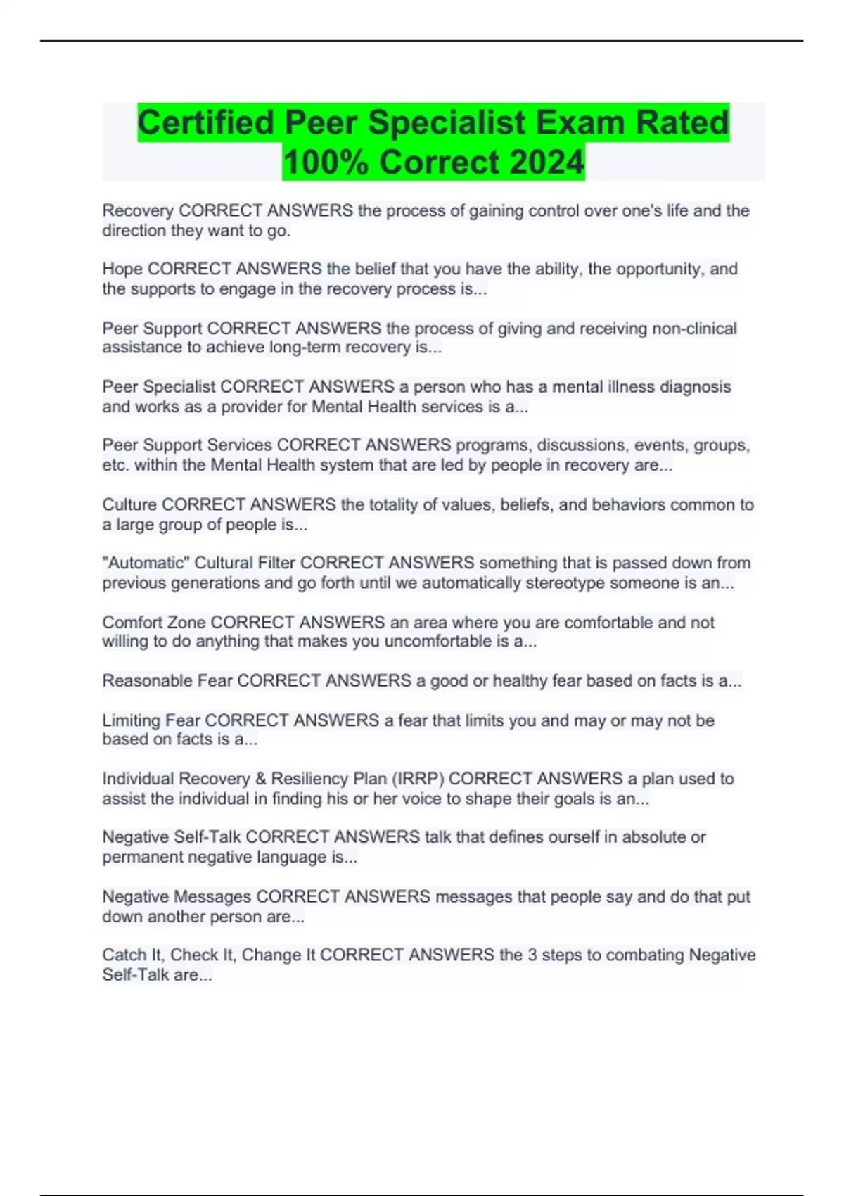 certified peer specialist exam rated 100 correct