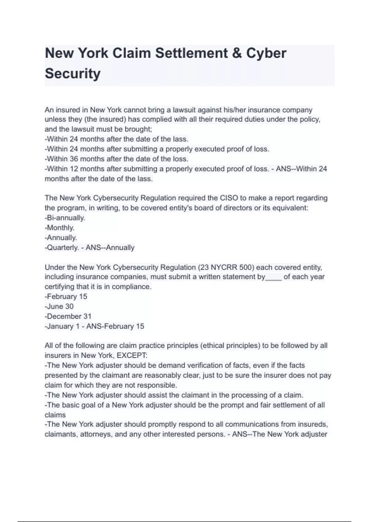 New York Claim Settlement & Cyber Security