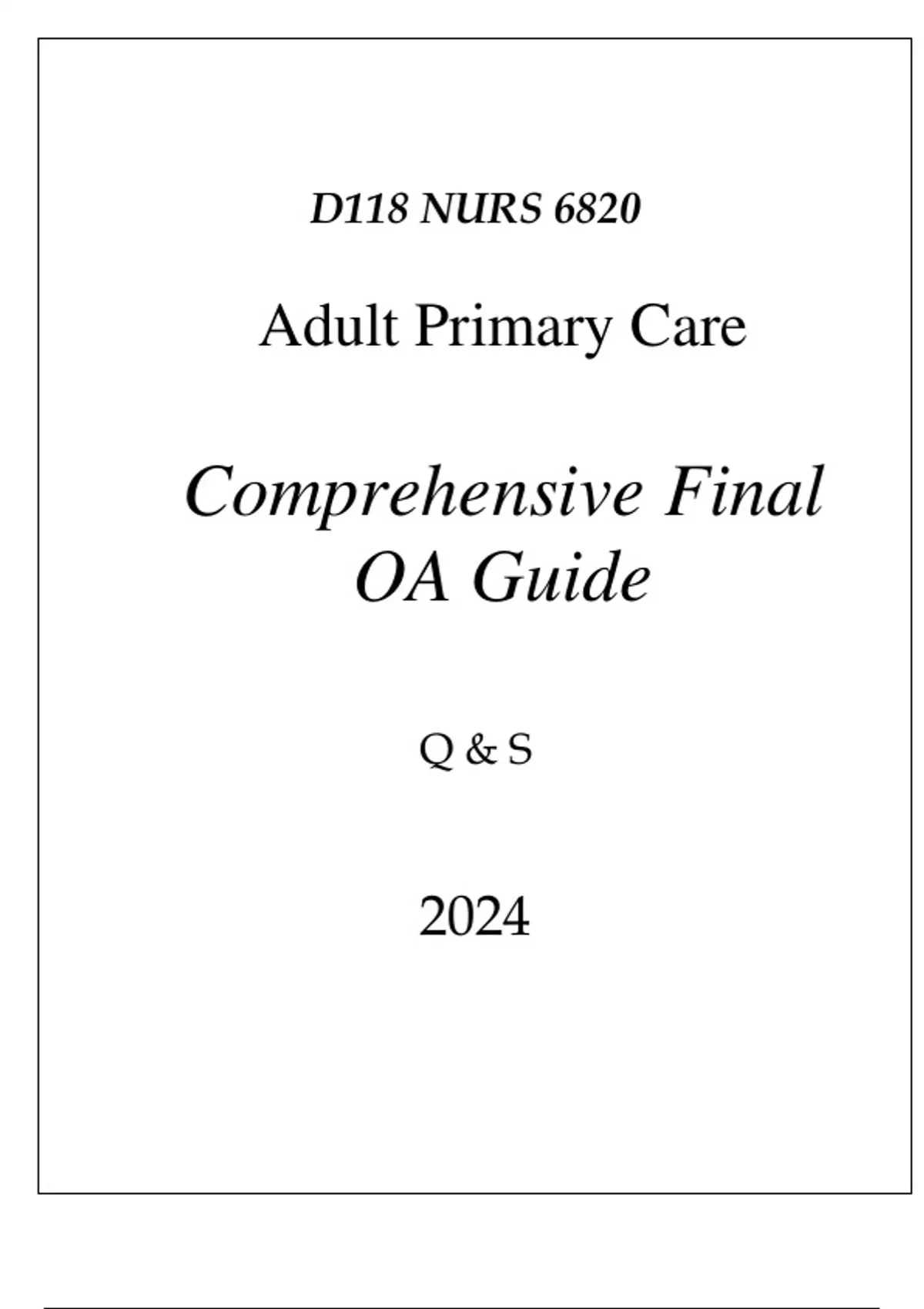 (WGU D118) NURS 6820 ADULT PRIMARY CARE COMPREHENSIVE FINAL OA GUIDE 2024V(WGU D118) NURS 6820 ADULT PRIMARY CARE COMPREHENSIVE FINAL OA GUIDE 2024