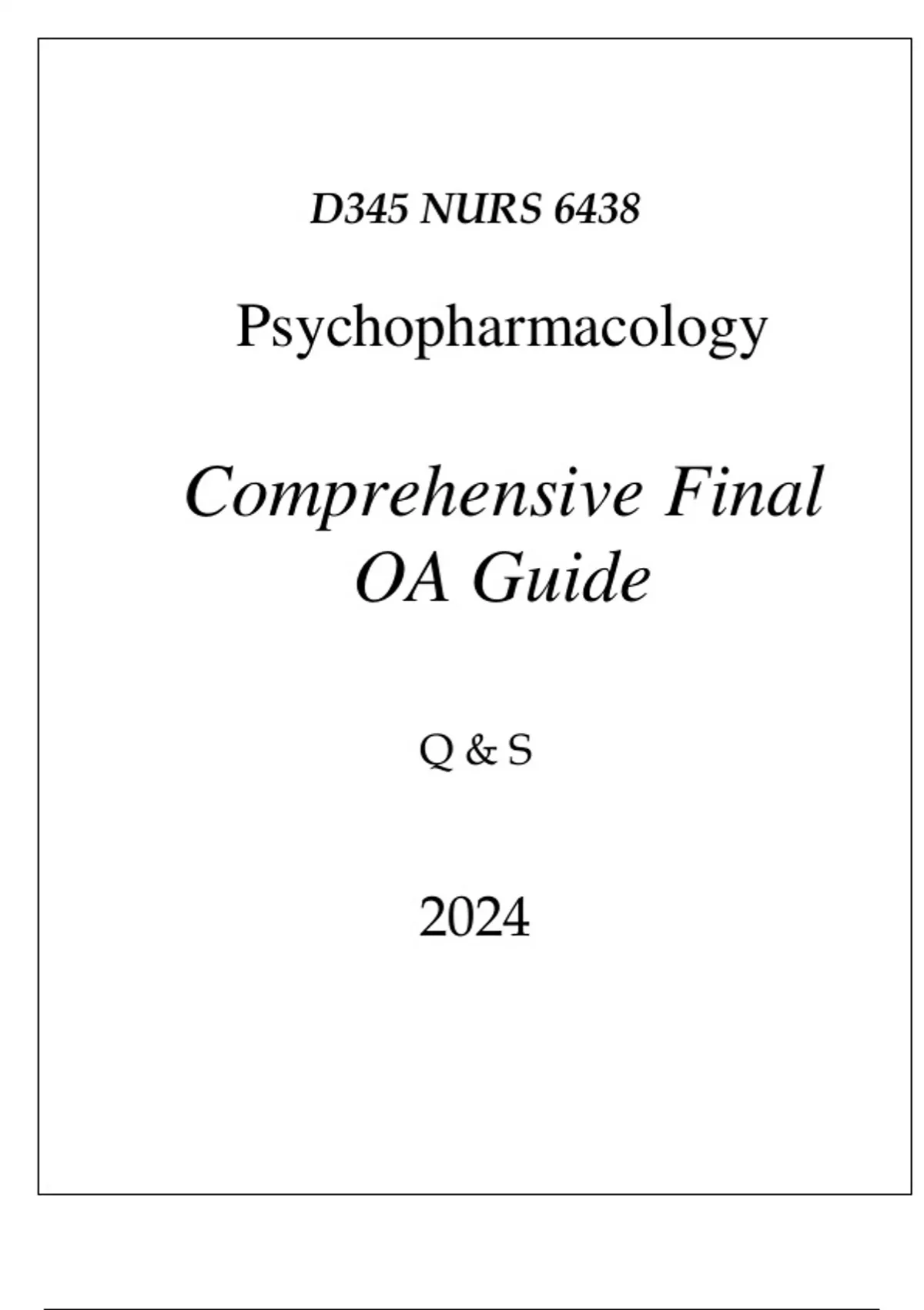 (WGU D345) NURS 6438 PSCHOPHARMACOLOGY COMPREHENSIVE FINAL OA GUIDE 2024.