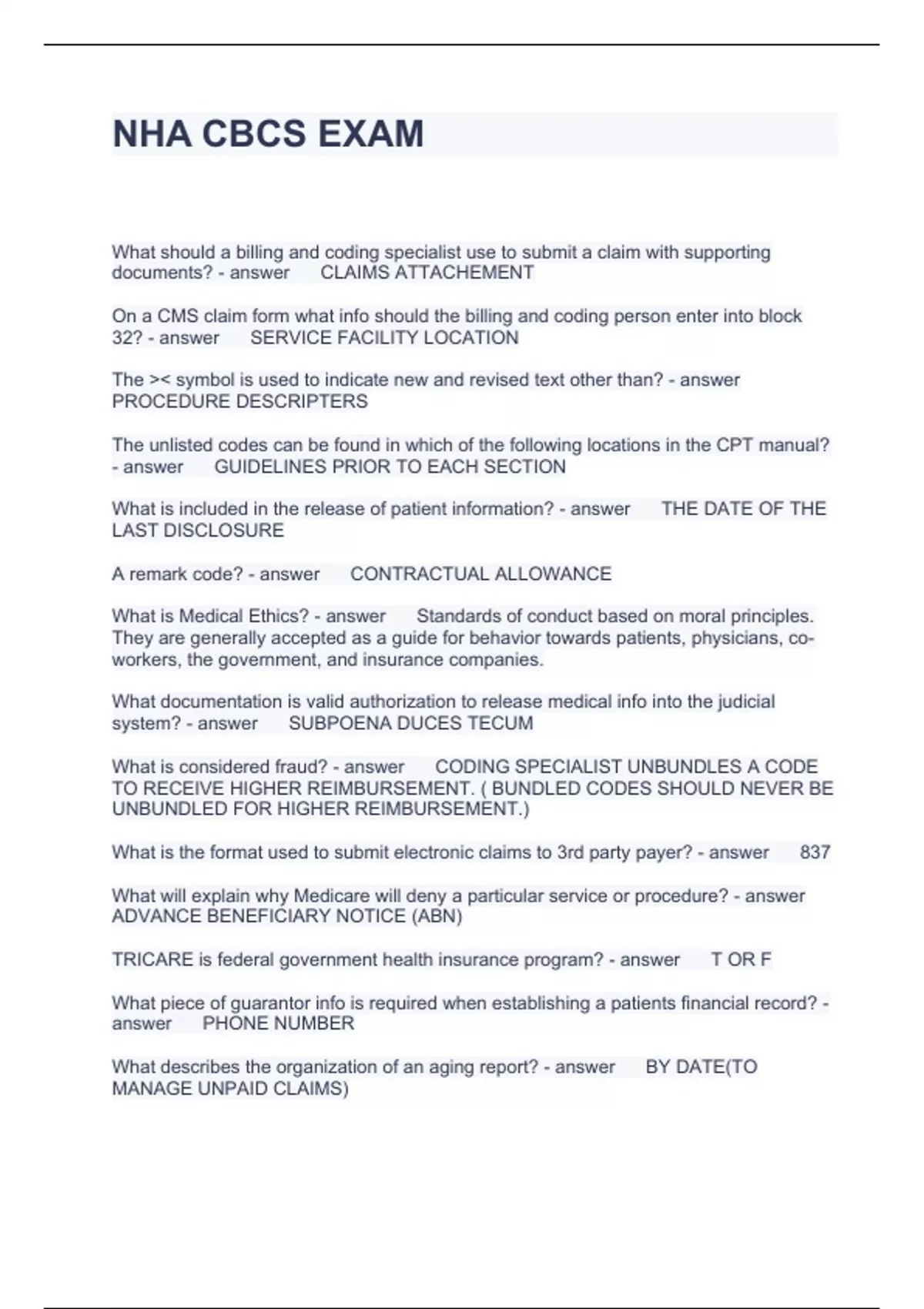 Exam of 2 pages for the course Cbcs at Cbcs (NHA CBCS EXAM)