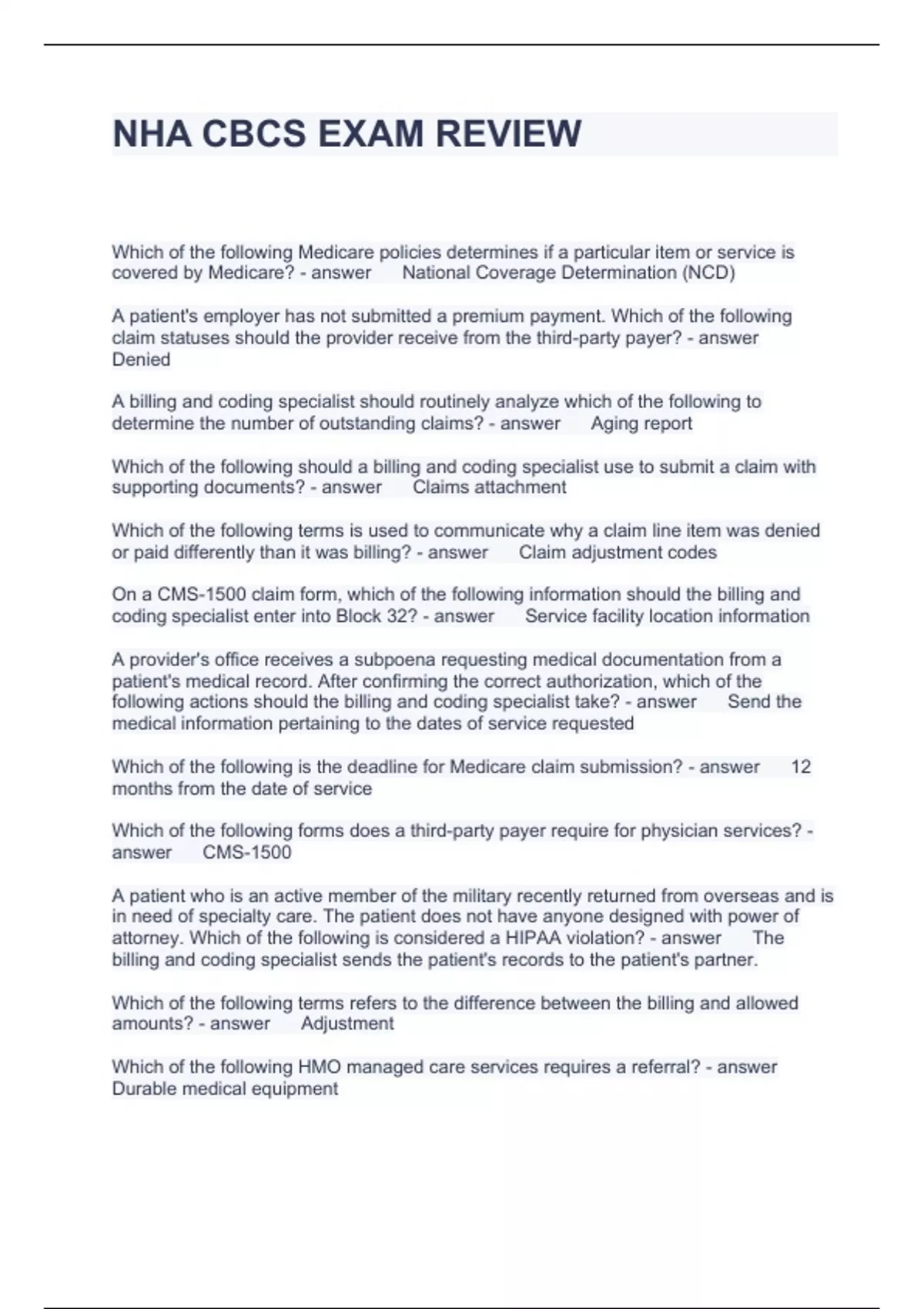 NHA CBCS EXAM REVIEW QUESTIONS AND ANSWERS GRADED A+