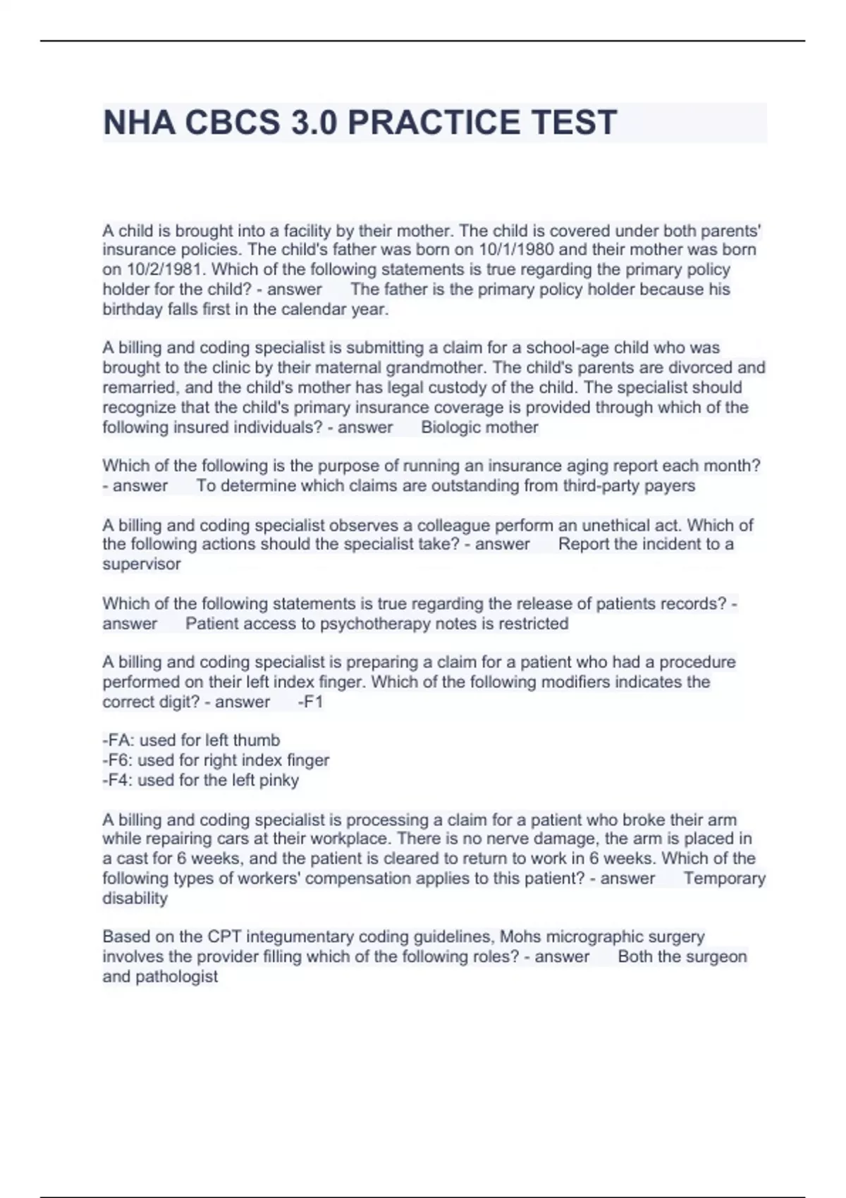 NHA CBCS 3.0 PRACTICE TEST QUESTIONS AND ANSWERS 2024