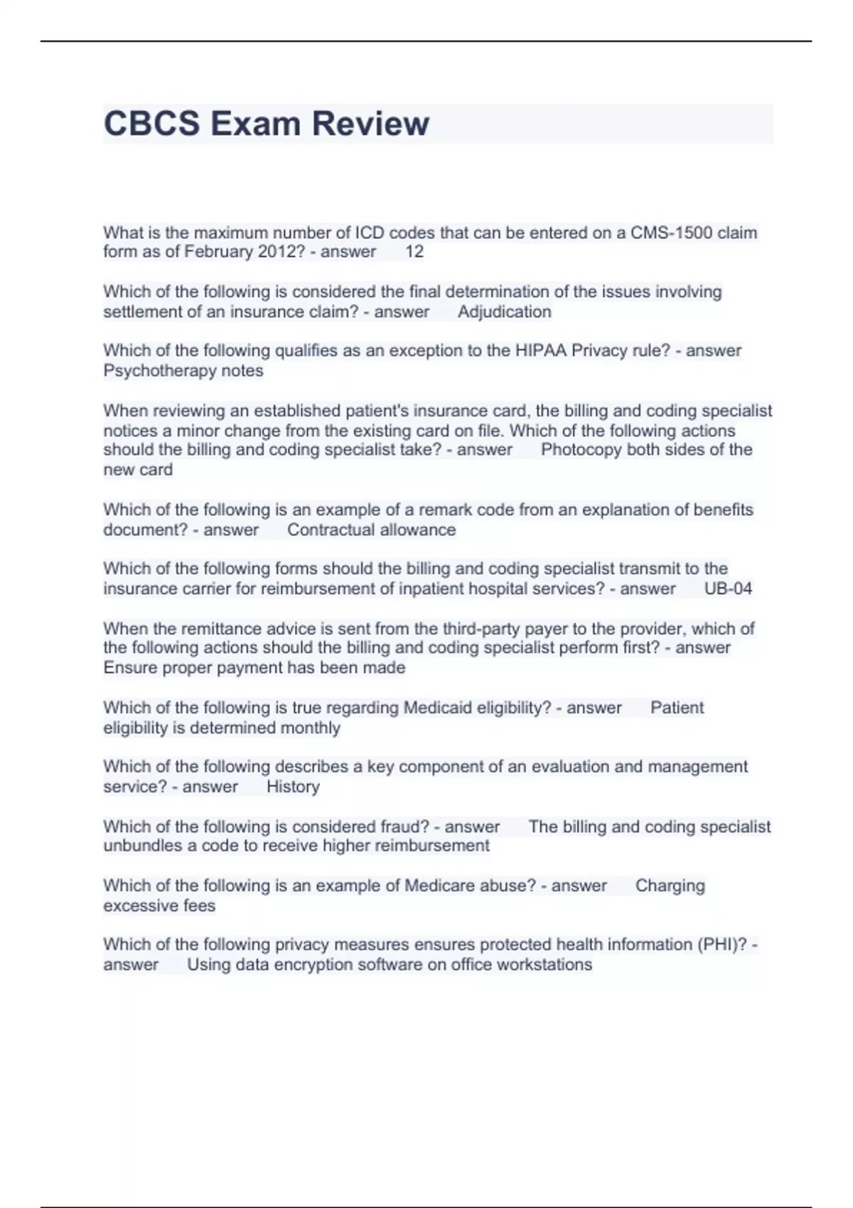 CBCS Exam Review Questions and Answers 100% correct