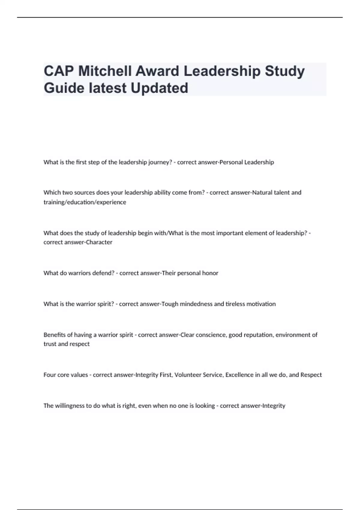CAP Mitchell Award Leadership Study Guide Iatest Updated CAP Mitchell Award Leadership Study Guide Iatest Updated CAP Mitchell Award Leadership Study Guide Iatest Updated