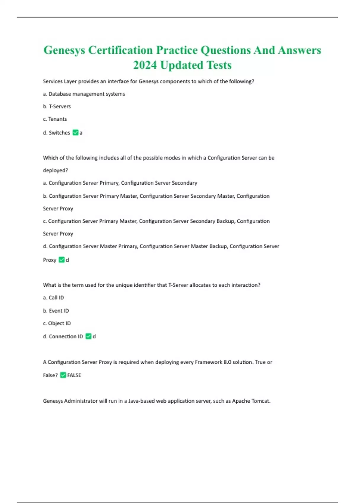 Genesys Certification Practice Questions And Answers 2024 Updated Tests Genesys Certification Practice Questions And Answers 2024 Updated Tests