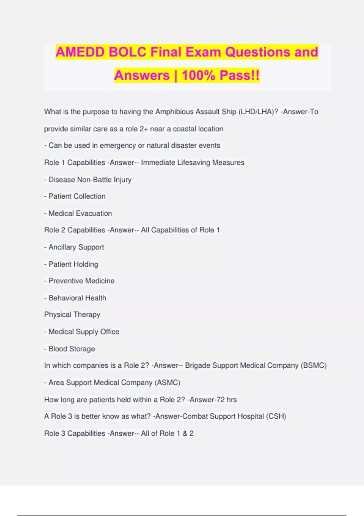 AMEDD BOLC Final Exam Questions and Answers | 100% Pass!!