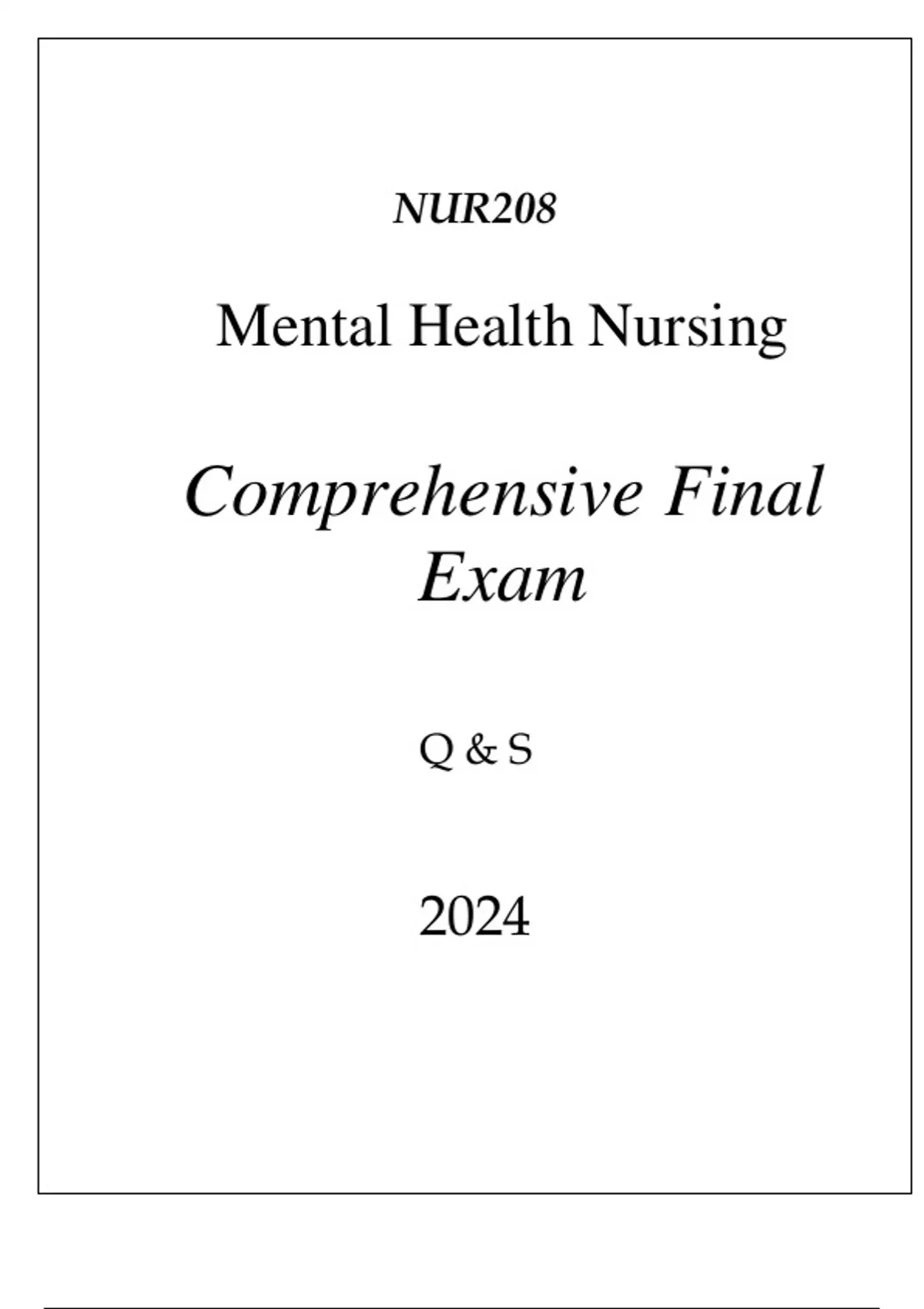 (FORTIS) NUR208 MENTAL HEALTH NURSING COMPREHENSIVE FINAL EXAM Q & S 2024.(FORTIS) NUR208 MENTAL HEALTH NURSING COMPREHENSIVE FINAL EXAM Q & S 2024.