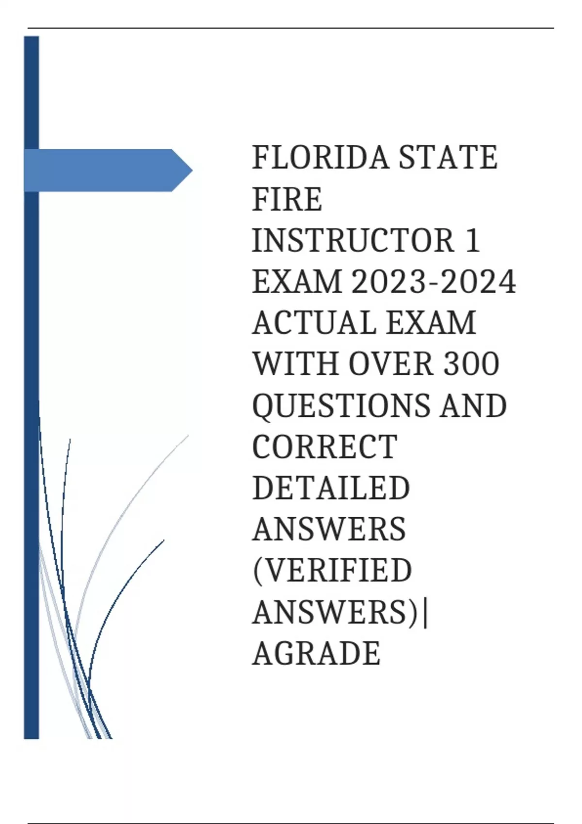 FLORIDA STATE FIRE INSTRUCTOR 1 EXAM ACTUAL EXAM WITH OVER 300 QUESTIONS AND CORRECT DETAILED ANSWERS (VERIFIED ANSWERS)|AGRADE