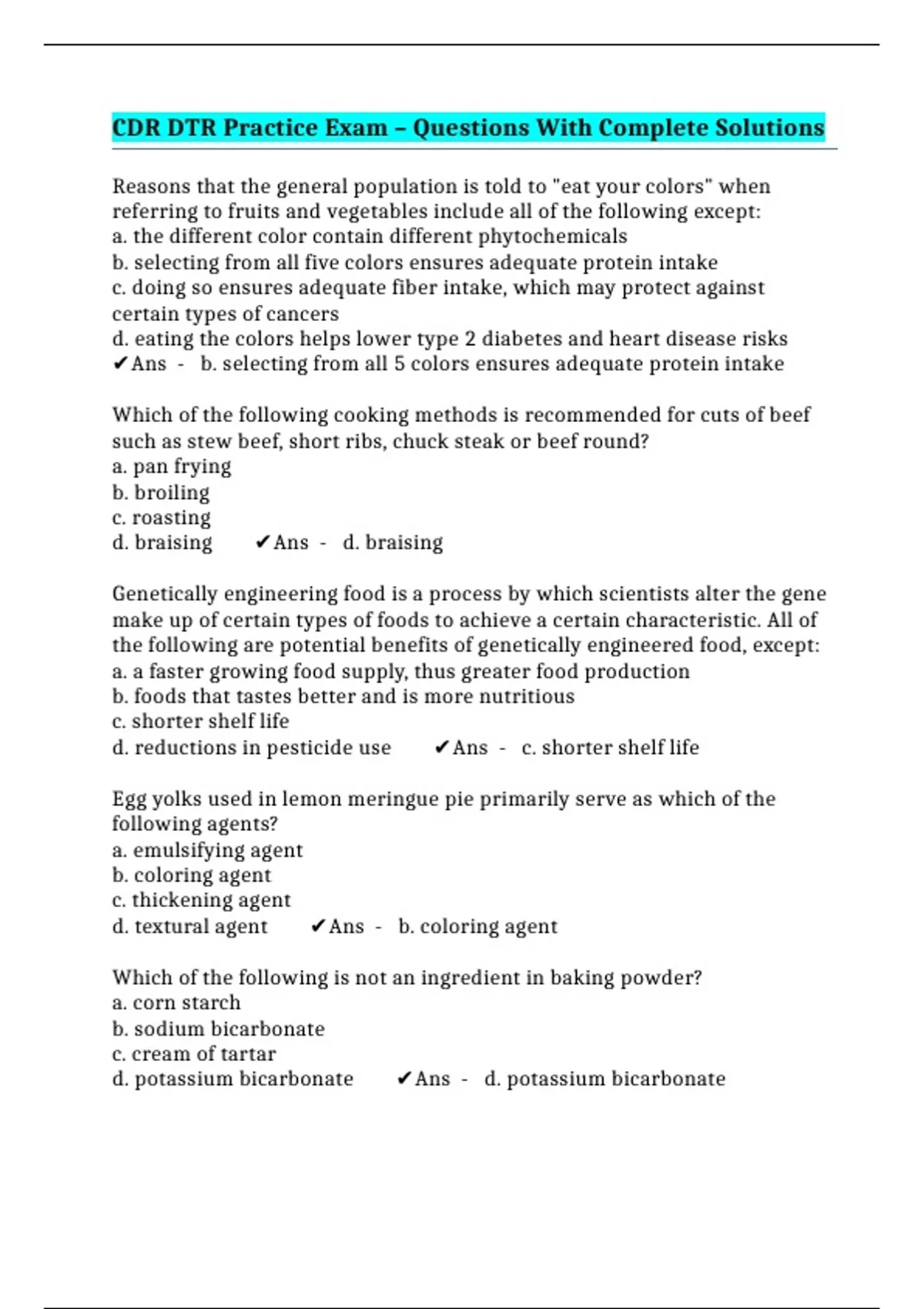 CDR DTR Practice Exam – Questions With Complete Solutions