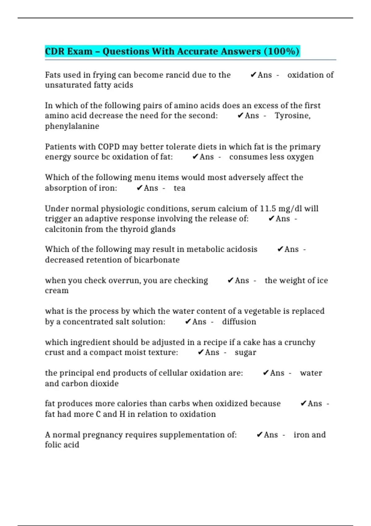 CDR Exam – Questions With Accurate Answers (100%)