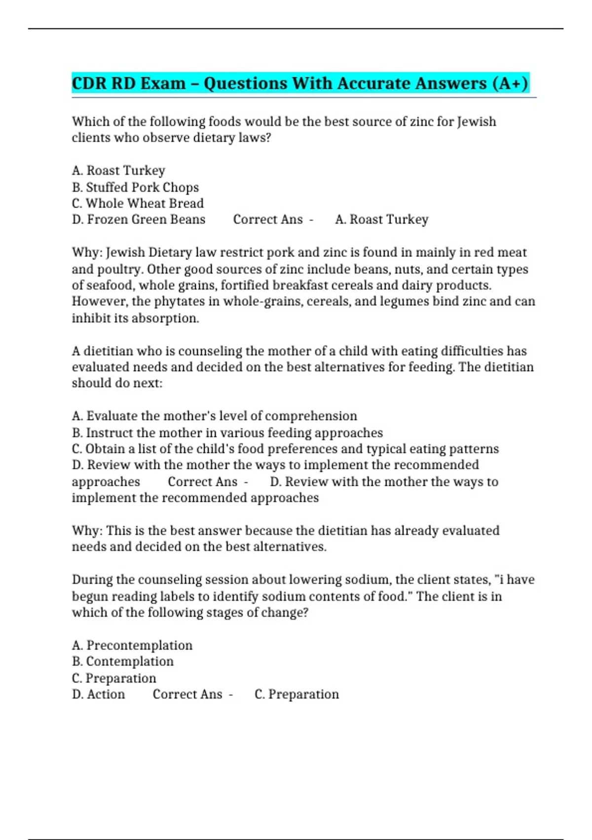 CDR RD Exam – Questions With Accurate Answers (A+)