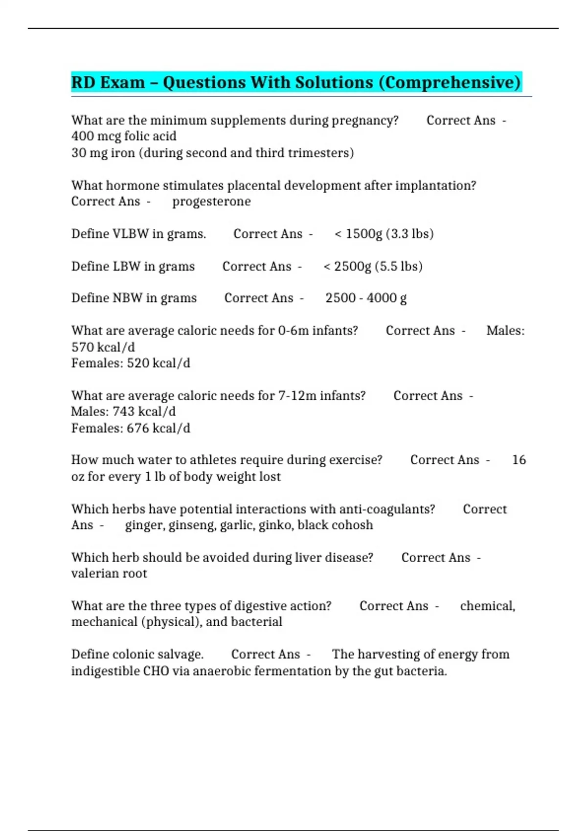 RD Exam – Questions With Solutions (Comprehensive)
