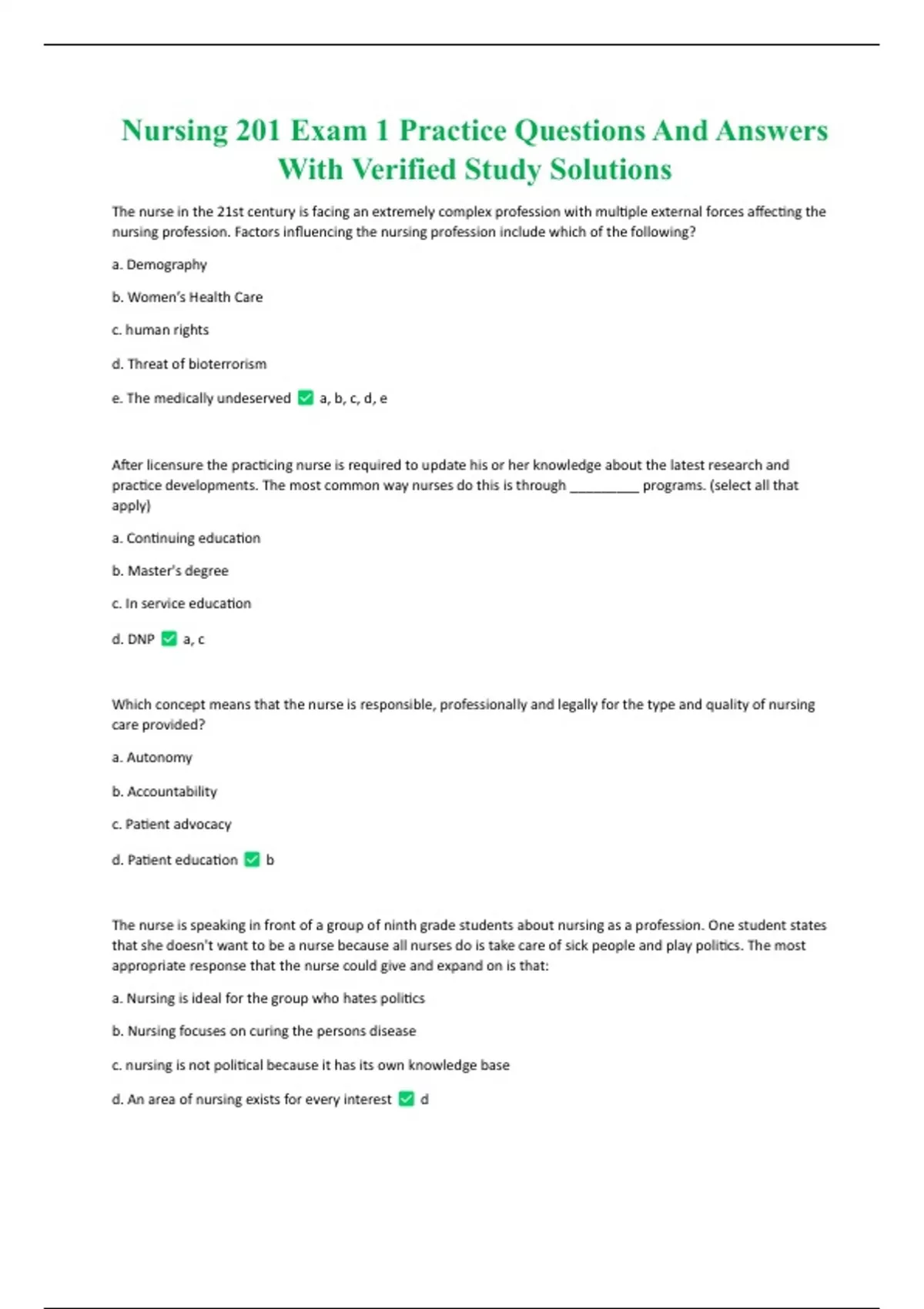 Nursing 201 Exam 1 Practice Questions And Answers With Verified Study Solutions Nursing 201 Exam 1 Practice Questions And Answers With Verified Study Solutions