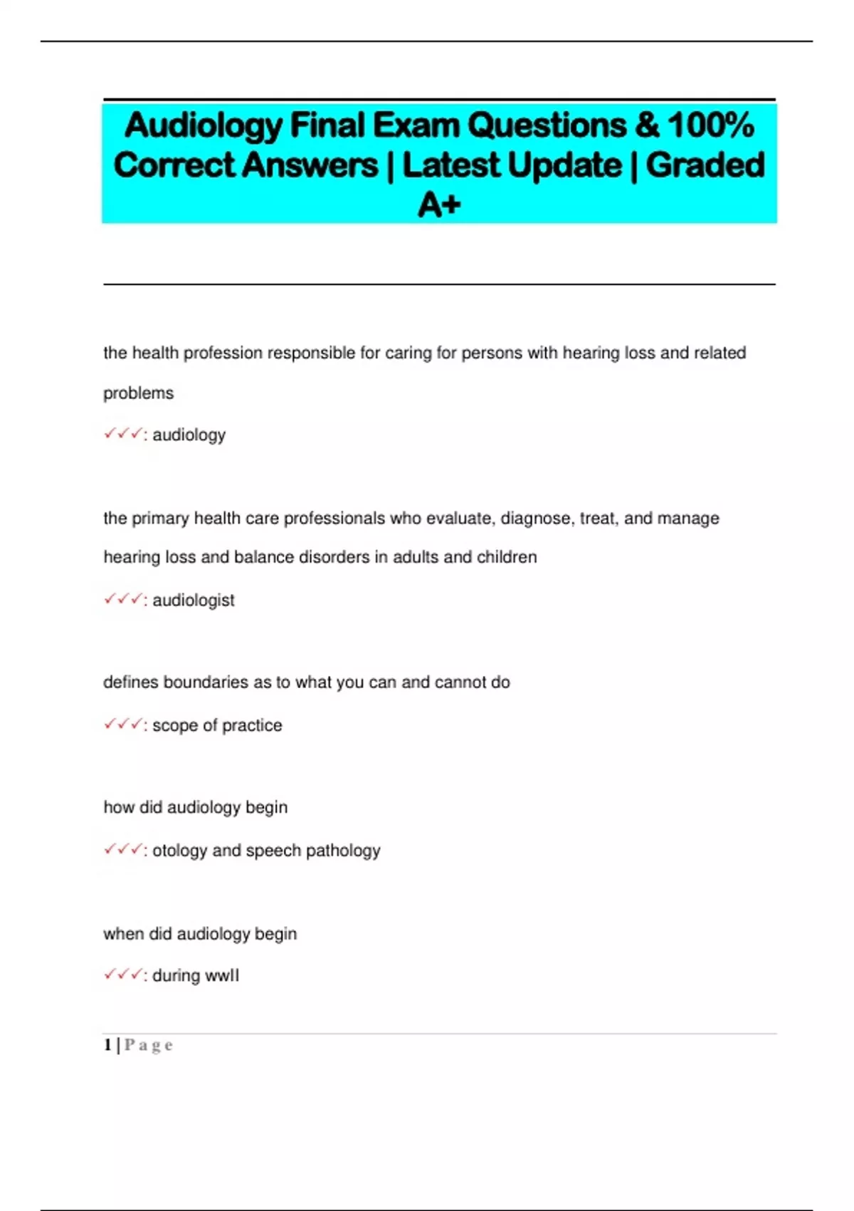 Audiology Final Exam Questions & 100% Correct Answers | Latest Update | Graded A+