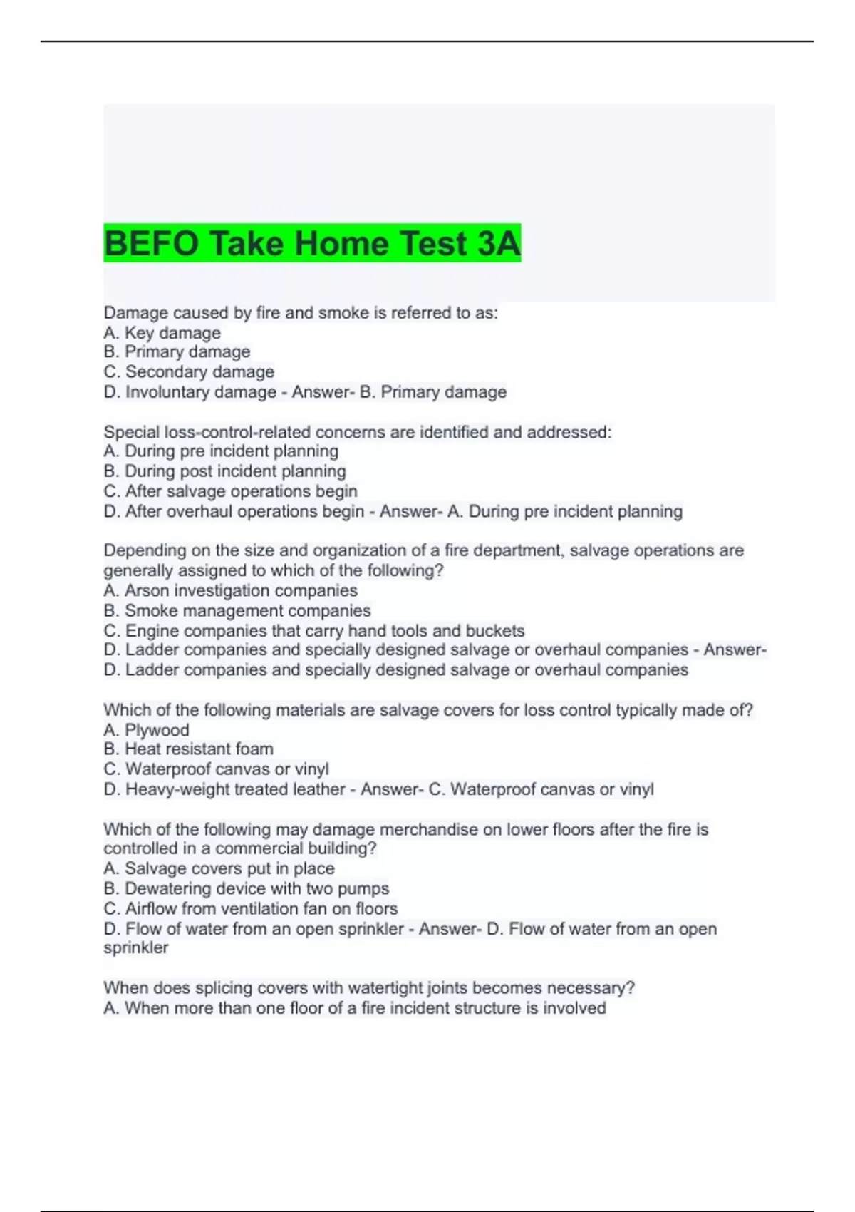 BEFO Take Home Test 3A Questions and Answers