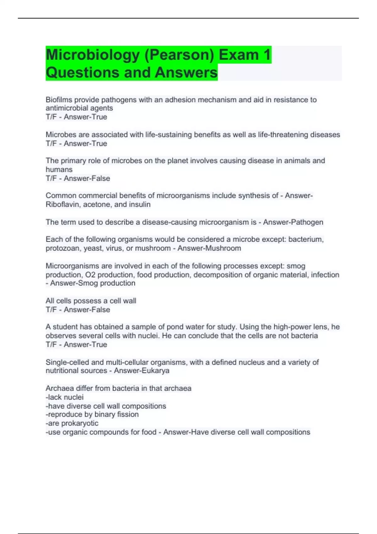 Microbiology (Pearson) Exam 1 Questions and Answers