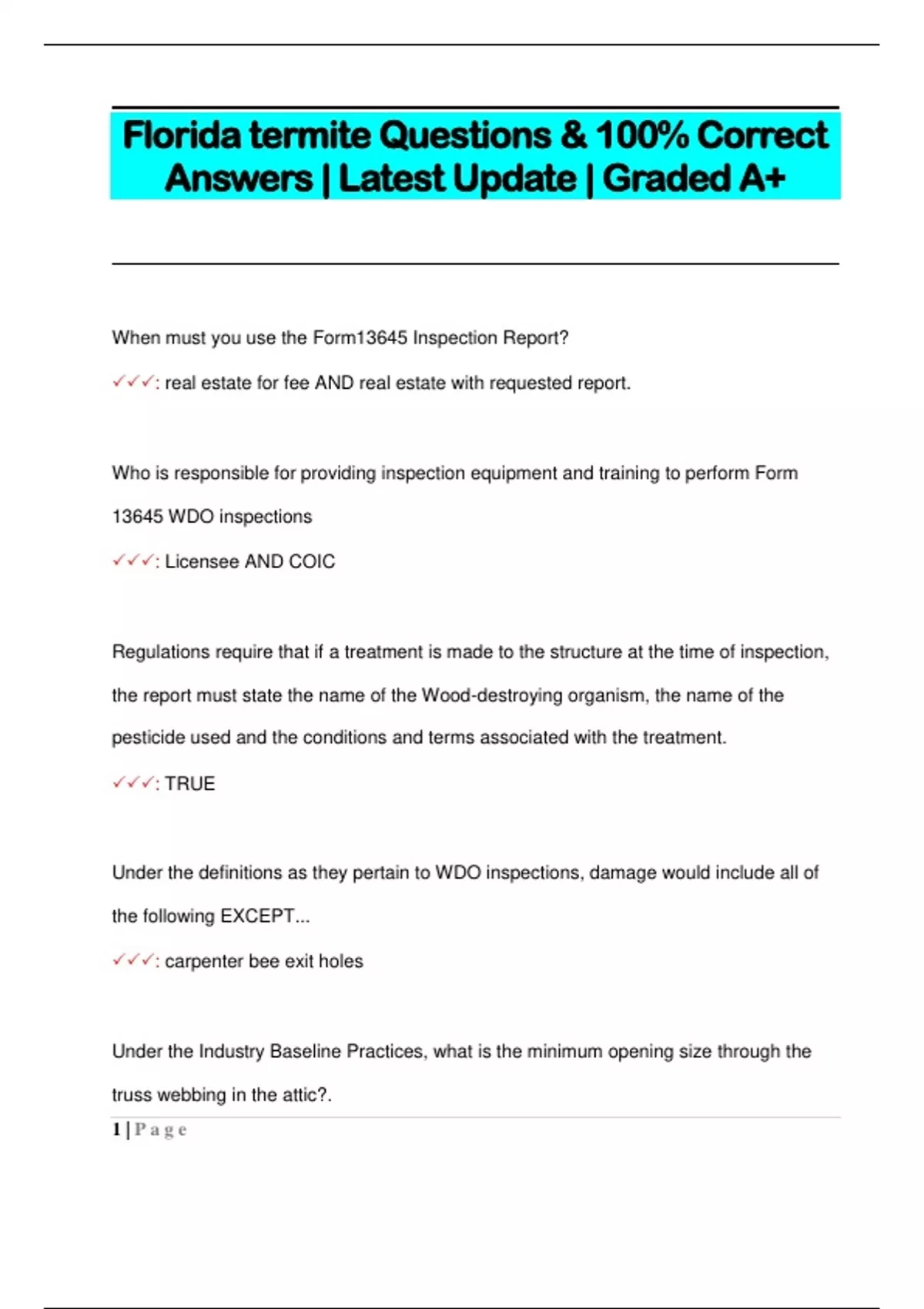 Florida termite Questions & 100% Correct Answers | Latest Update | Graded A+