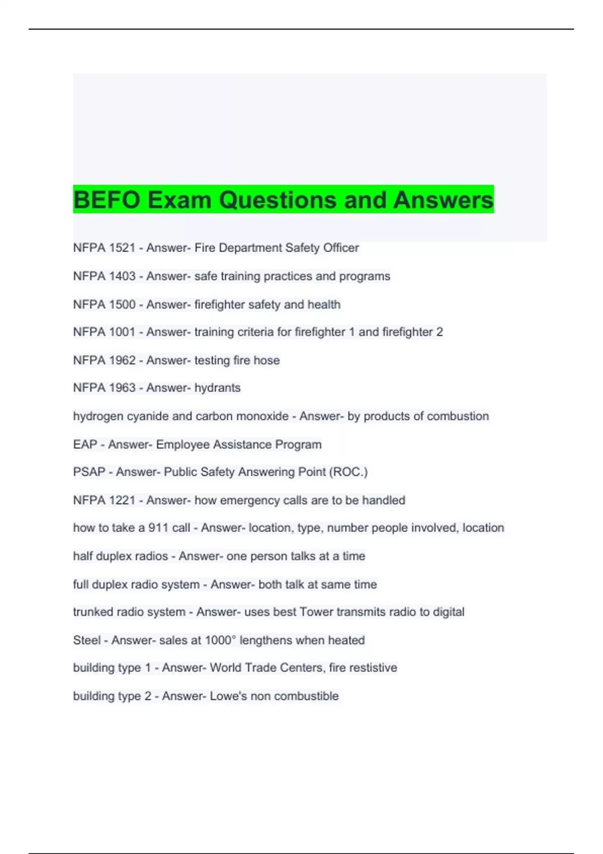 BEFO Exam Questions and Answers 2024