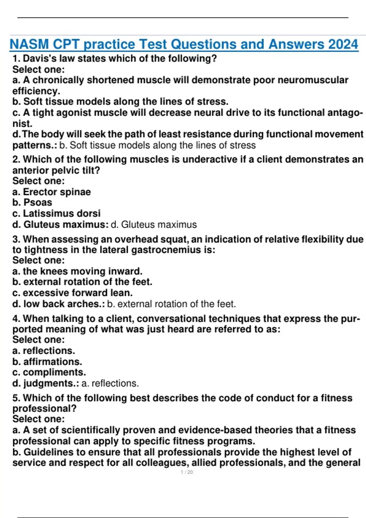NASM CPT practice Test Questions and Answers 2024.