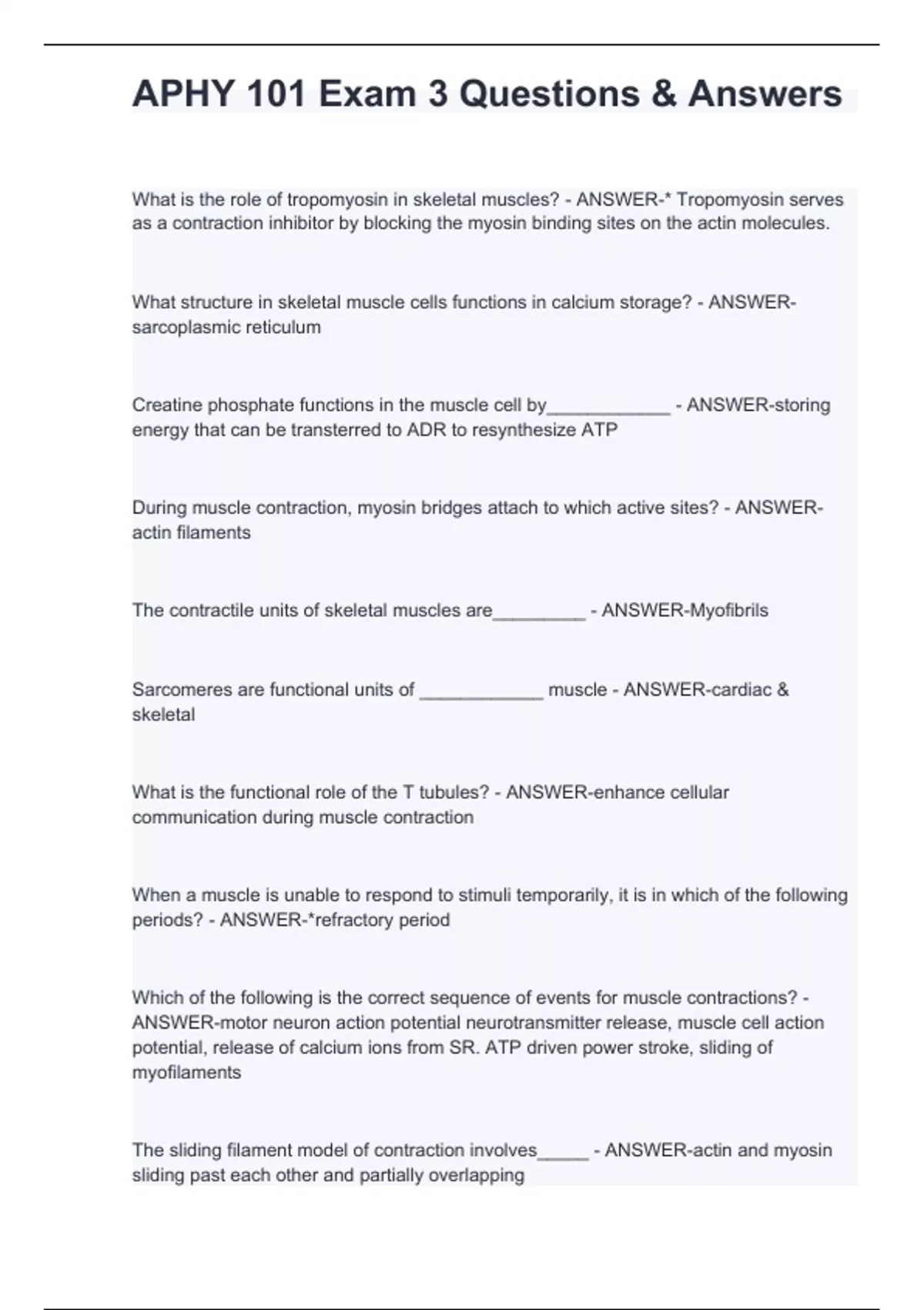 What is the role of tropomyosin in skeletal muscles? - ANSWER-* Tropomyosin serves