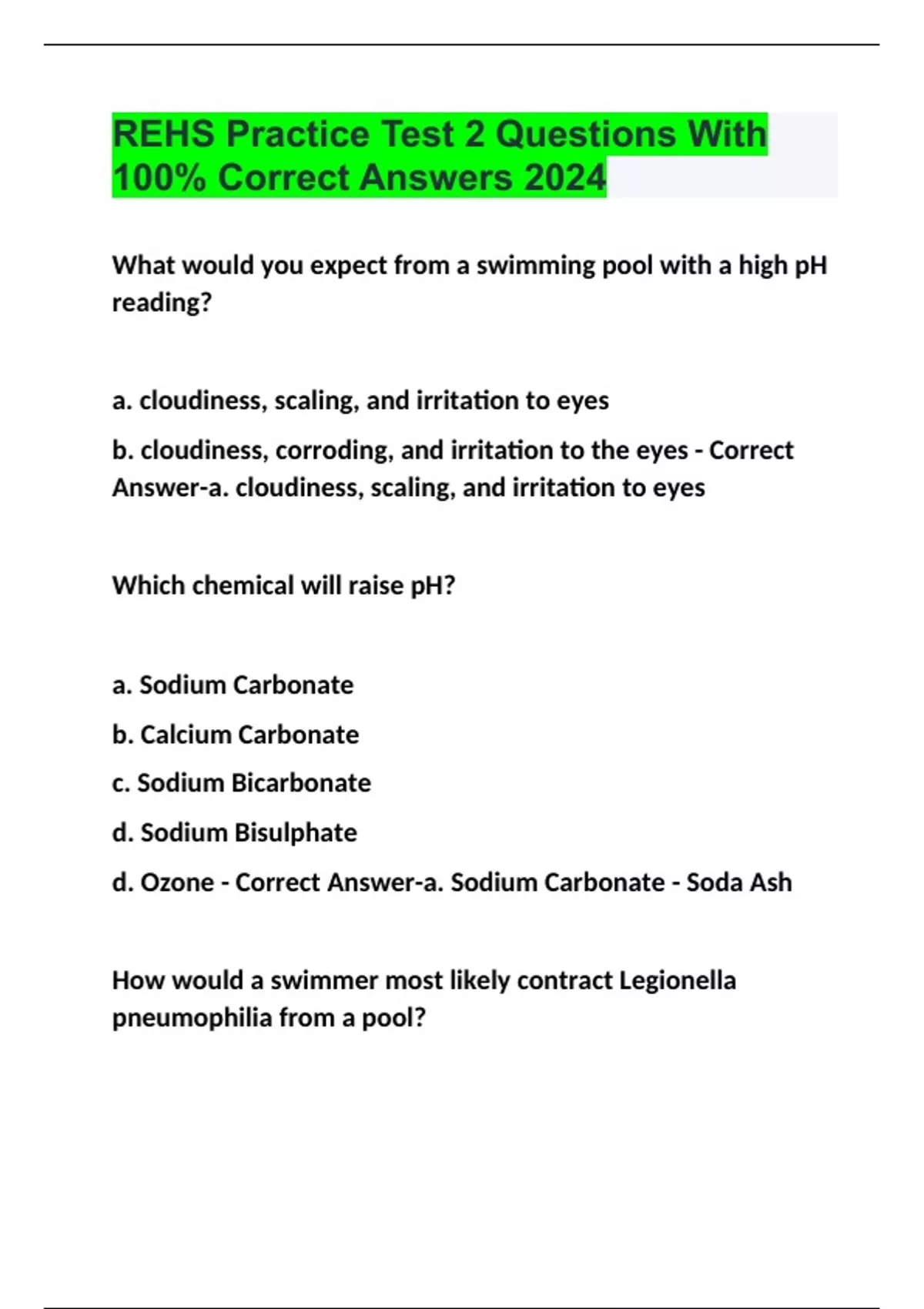 REHS Practice Test 2 Questions With 100% Correct Answers 2024