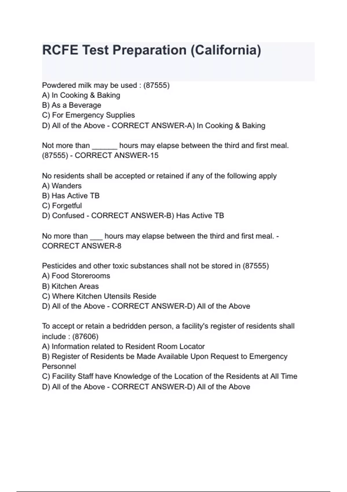 RCFE Test Preparation (California) with complete solution / Latest updated .