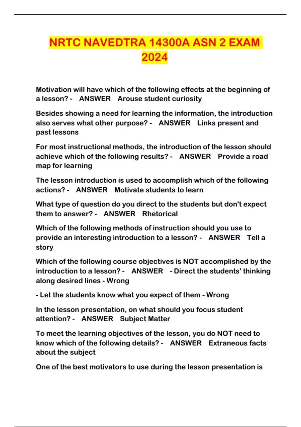 NRTC NAVEDTRA 14300A ASN 2 EXAM 2024...