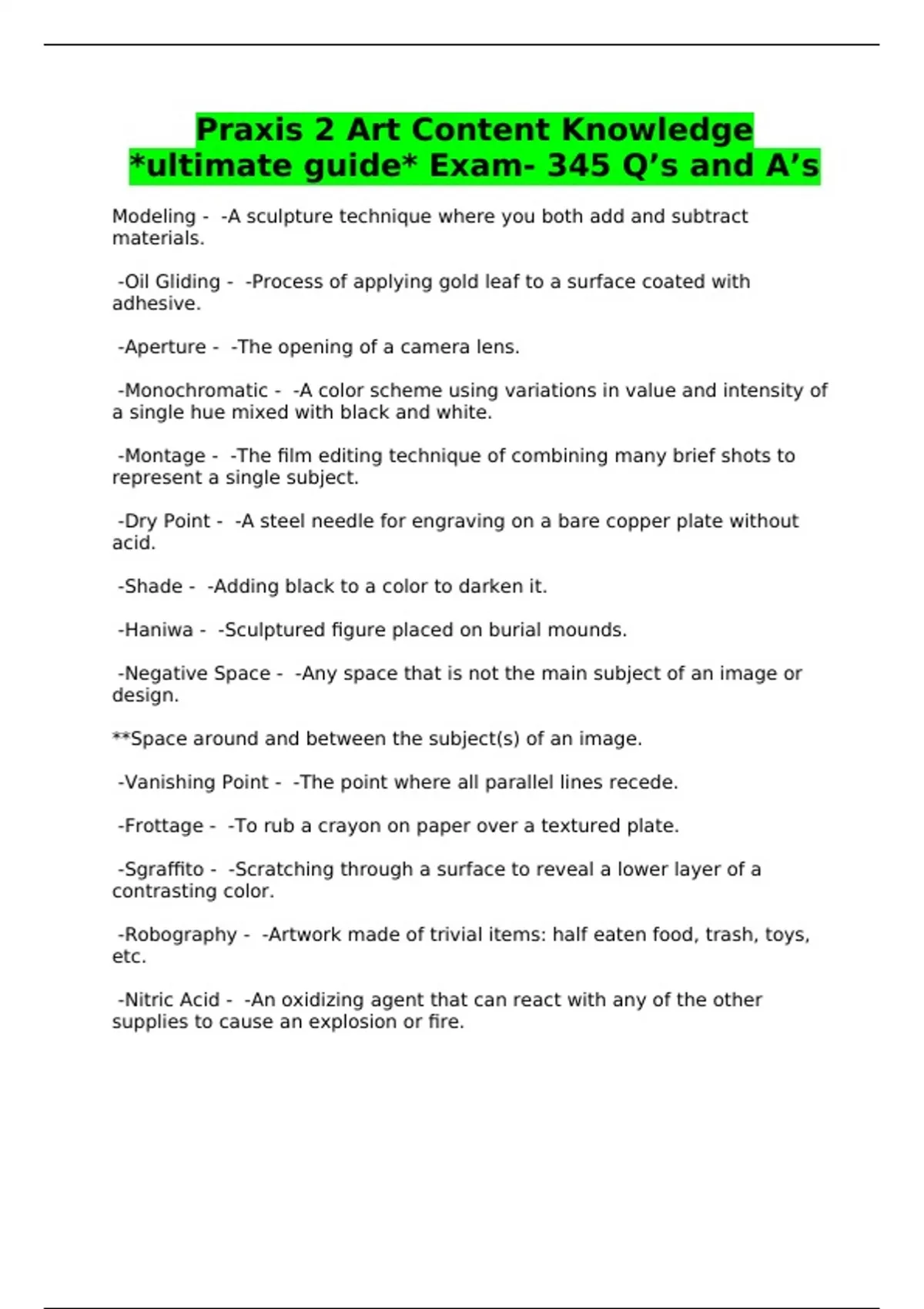 Praxis 2 Art Content Knowledge *ultimate guide* Exam- 345 Q’s and A’s