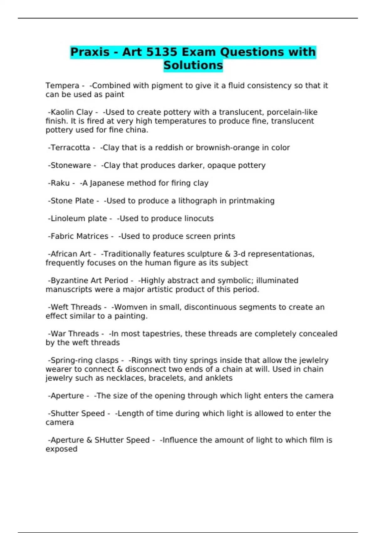 Praxis - Art 5135 Exam Questions with Solutions