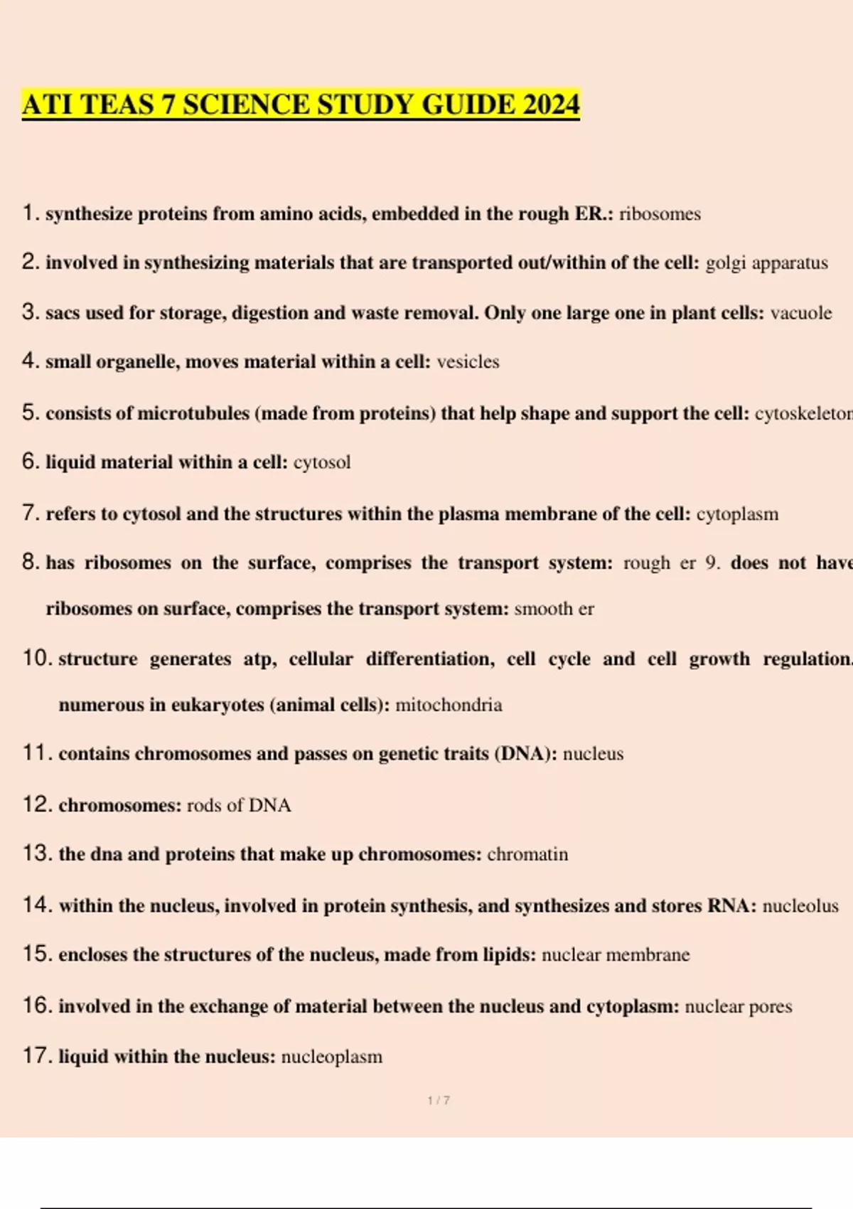 ATI TEAS 7 SCIENCE STUDY GUIDE 2024