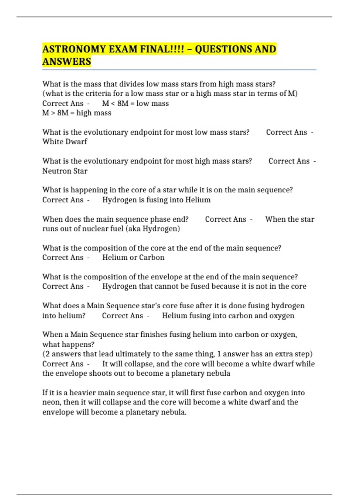 ASTRONOMY EXAM FINAL!!!! – QUESTIONS AND ANSWERS