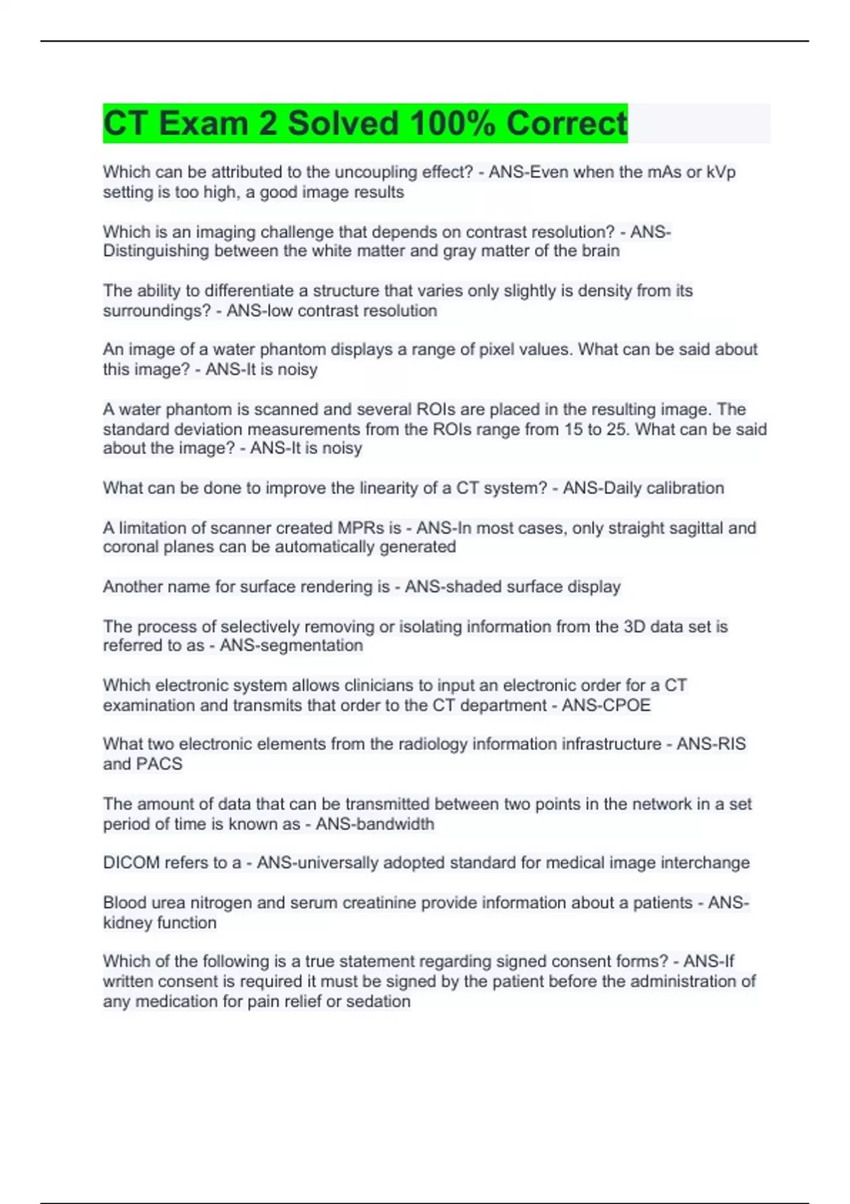 CT Exam 2 Solved 100% Correct