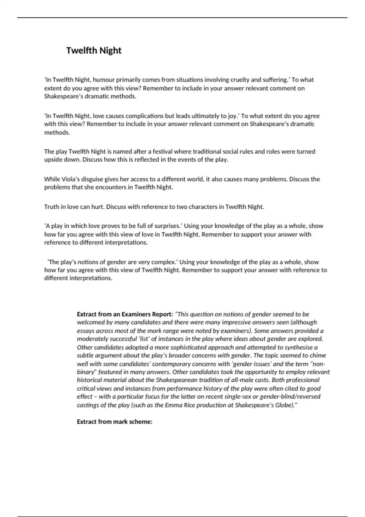 Extract from an Examiners Report: “This question on notions of gender seemed to be