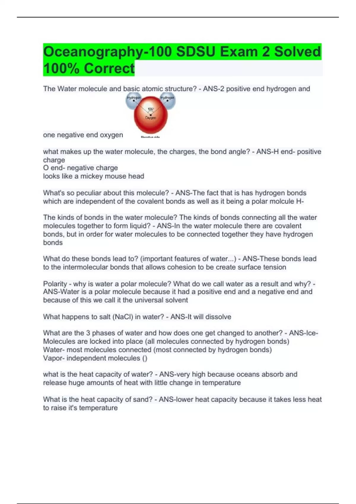 Oceanography-100 SDSU Exam 2 Solved 100% Correct