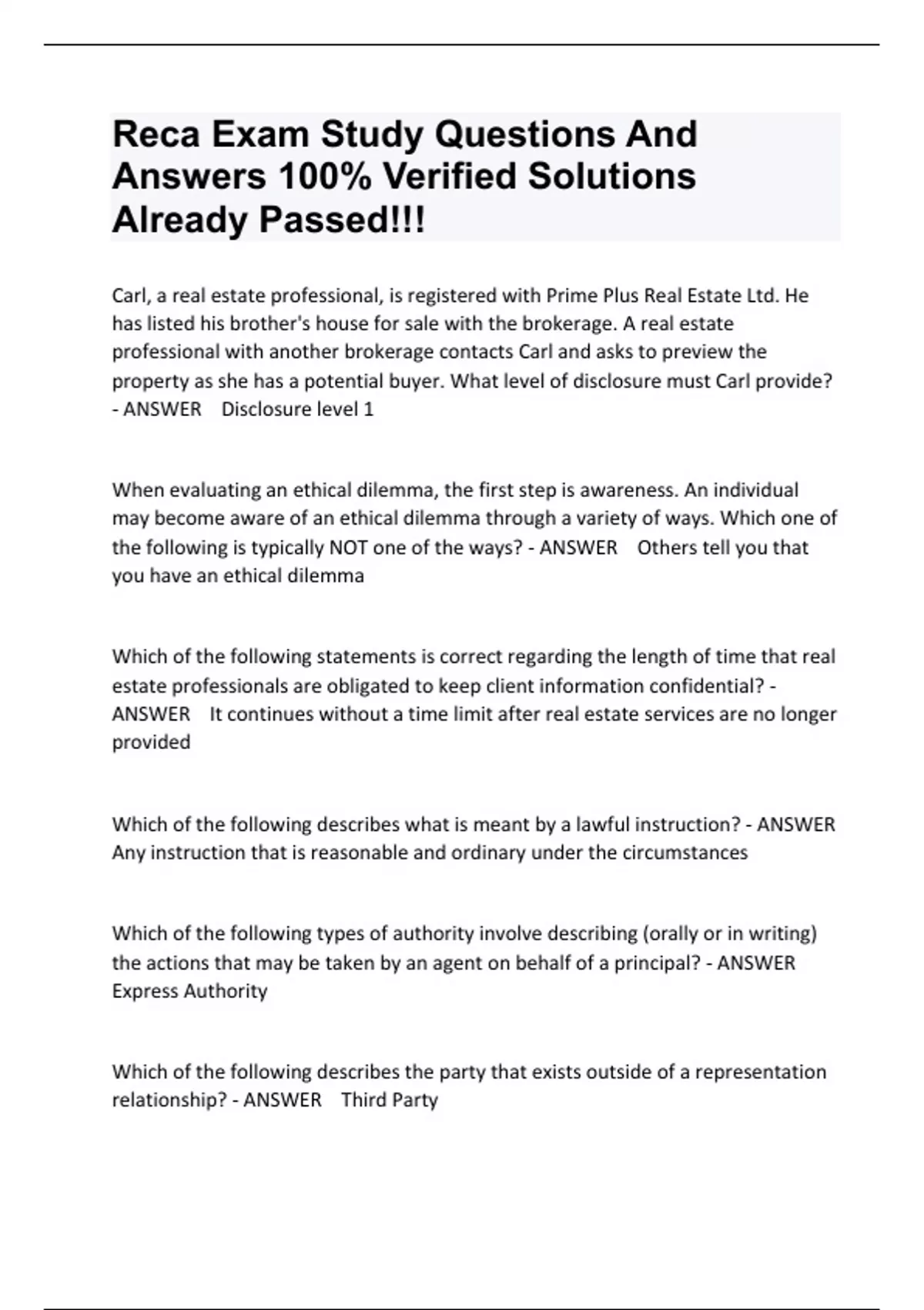 RECA BUNDLED EXAM QUESTIONS AND ANSWERS WITH WELL ELABORATED SOLUTIONS (GRADED A+)