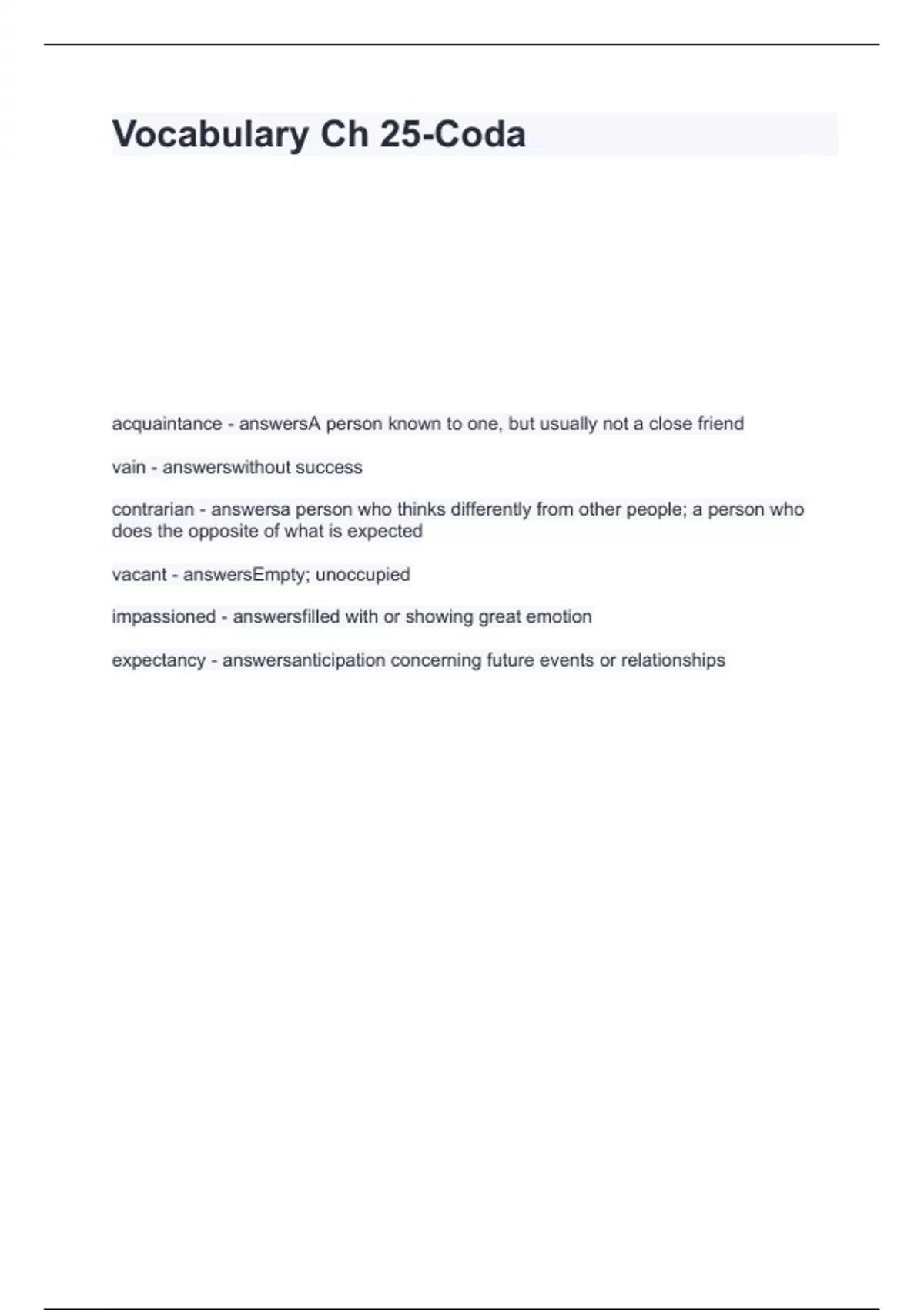 Vocabulary Ch 25 Questions with solutions