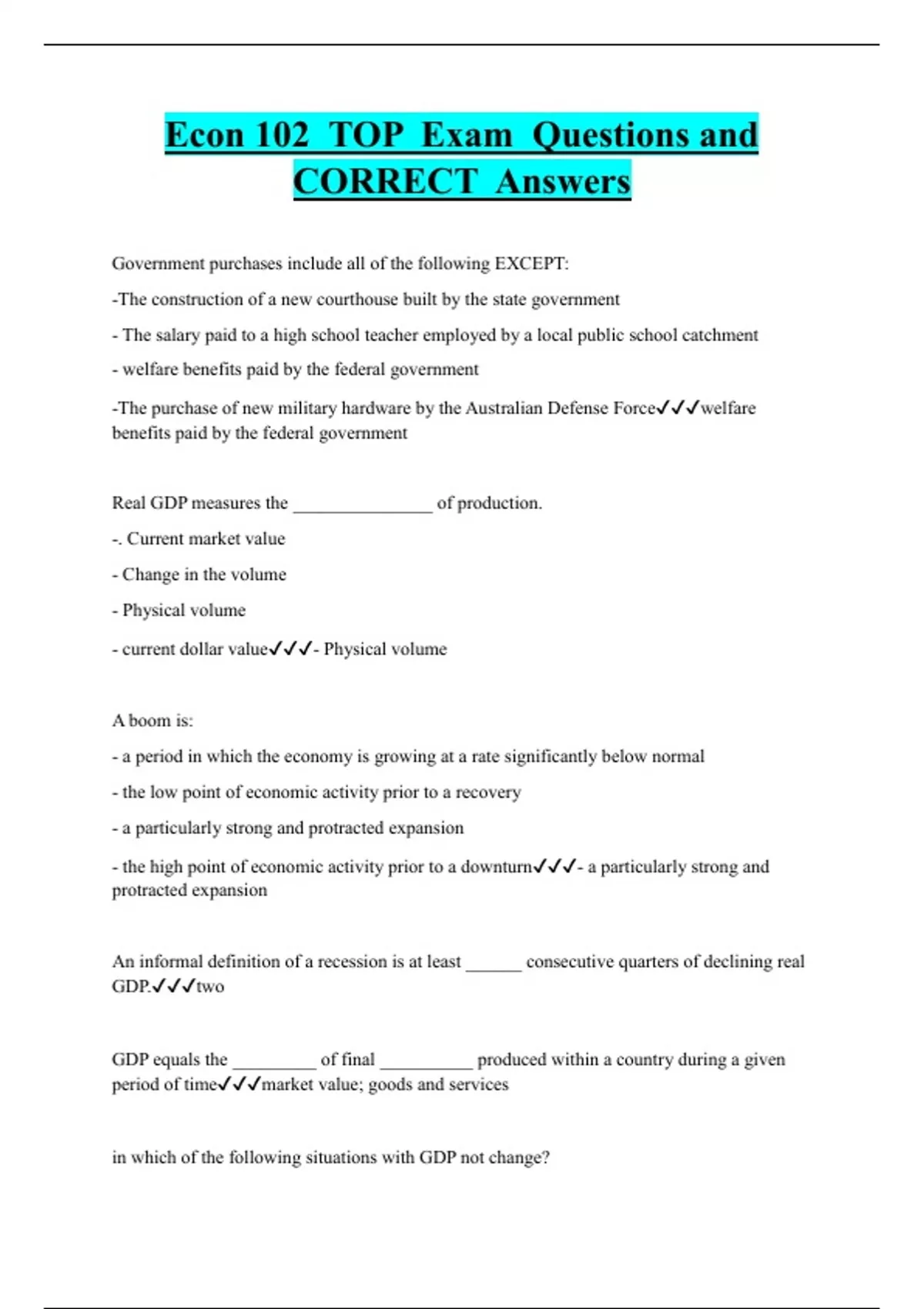 Econ 102 TOP Exam Questions and CORRECT Answers