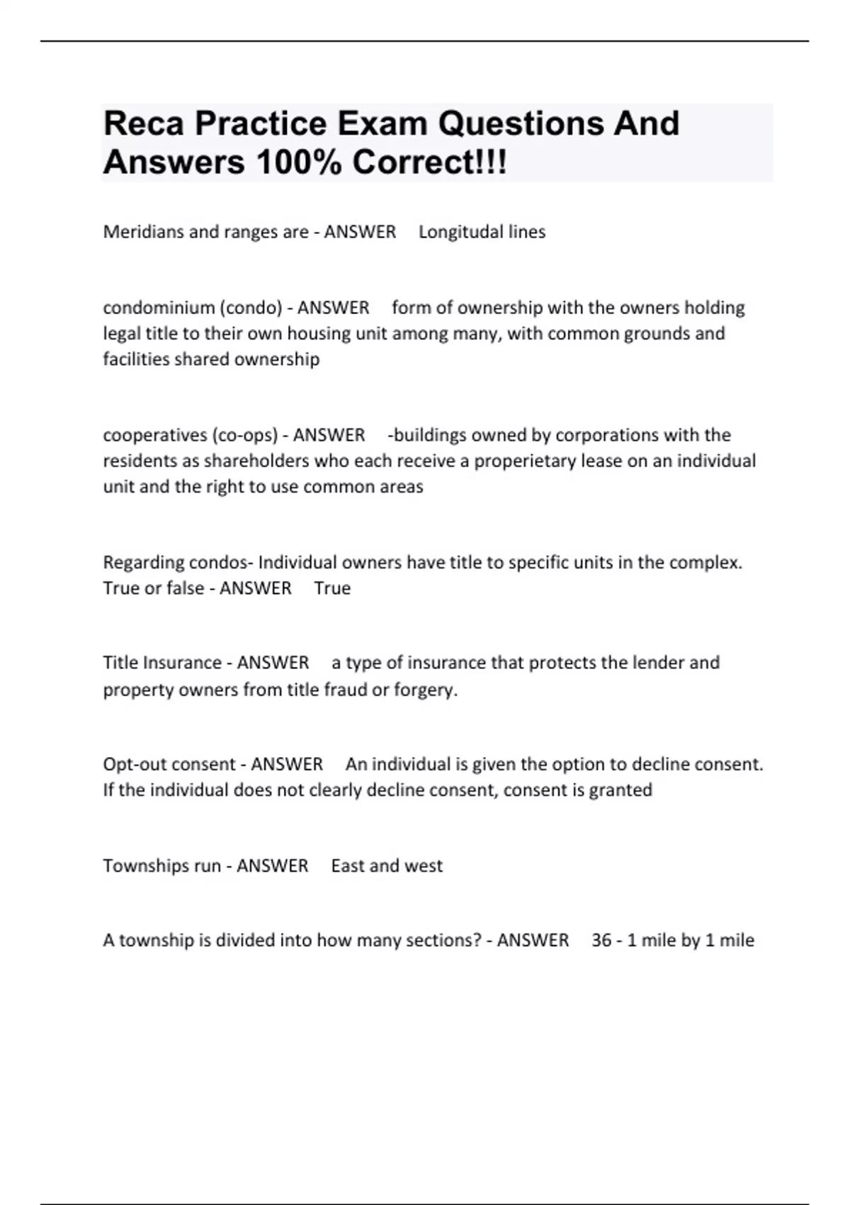 RECA BUNDLED EXAM QUESTIONS AND ANSWERS WITH WELL ELABORATED SOLUTIONS (GRADED A+)