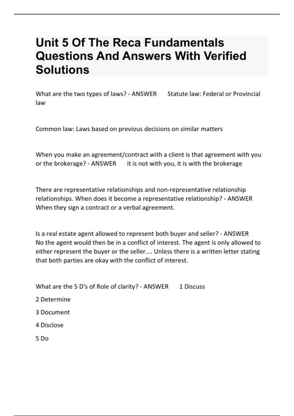 Unit 5 Of The Reca Fundamentals Questions And Answers With Verified Solutions.
