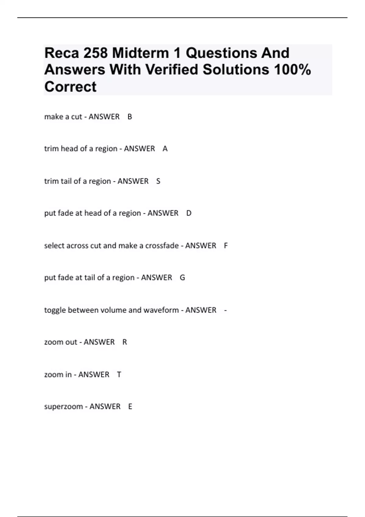 Reca 258 Midterm 1 Questions And Answers With Verified Solutions 100