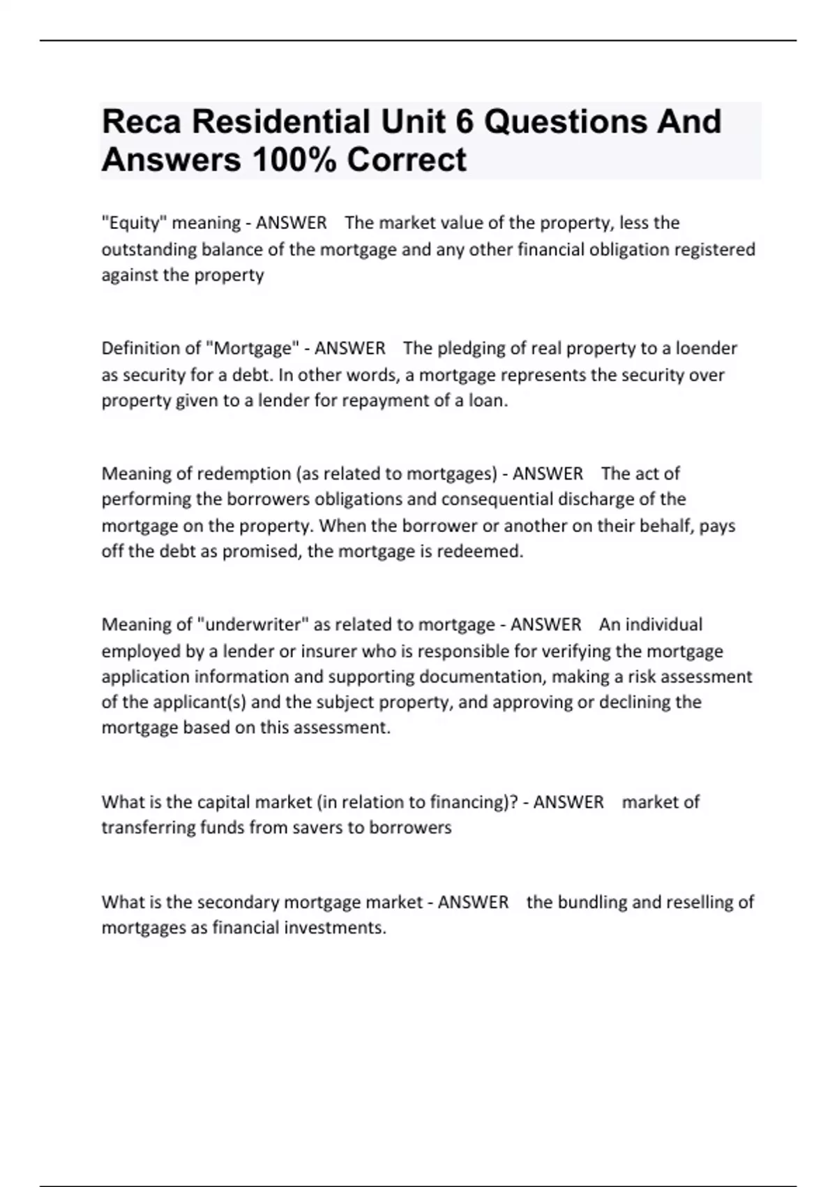 Reca Residential Unit 6 Questions And Answers 100 Correct